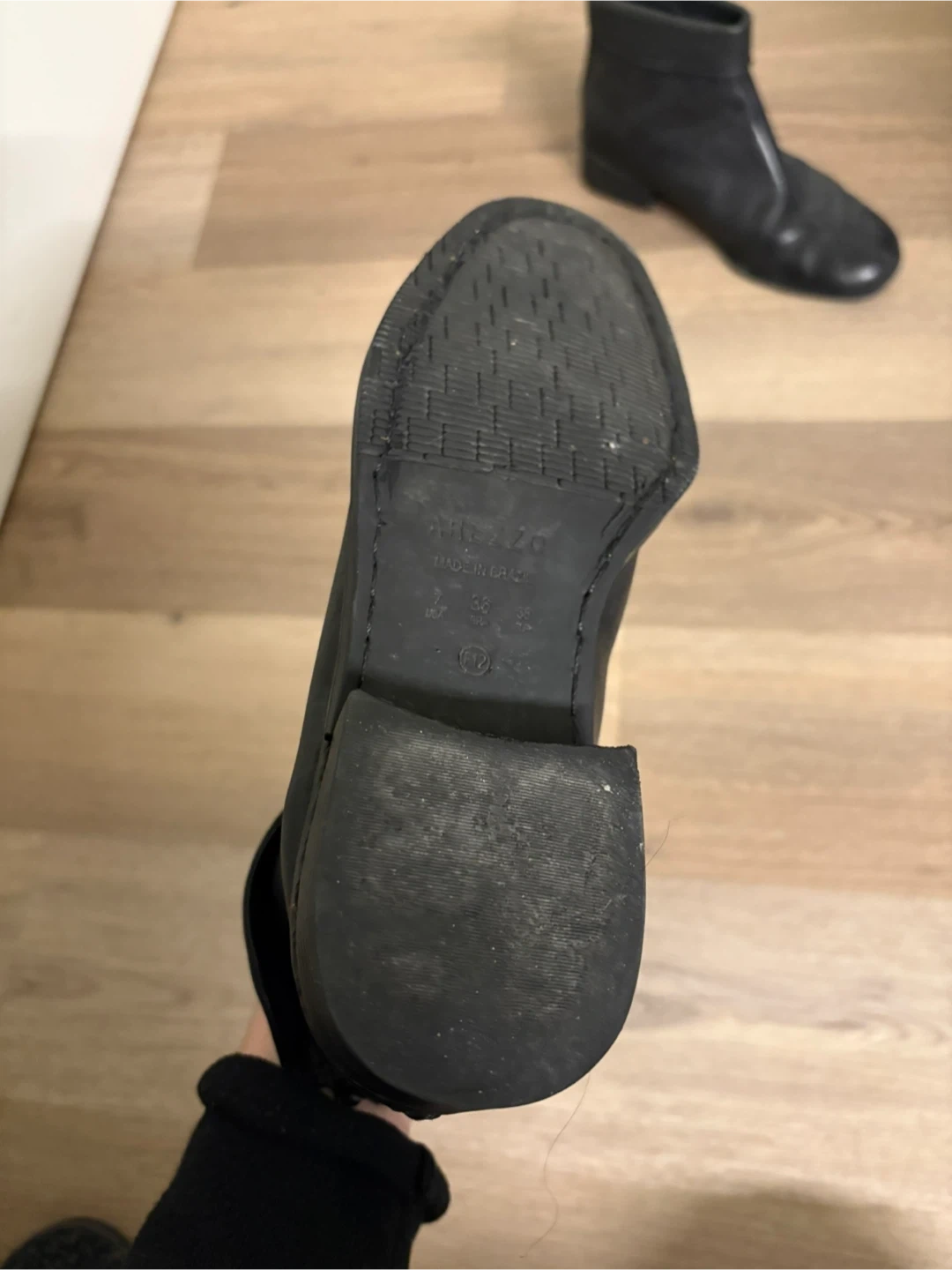 Selling a pair of Arezzo genuine leather ankle boots. They are in used condition as shown in the photos. Originally was size 7, however the sole was stitched, so the shoe ended up feeling tight. I recommend it for narrow feet and maybe in size 6.