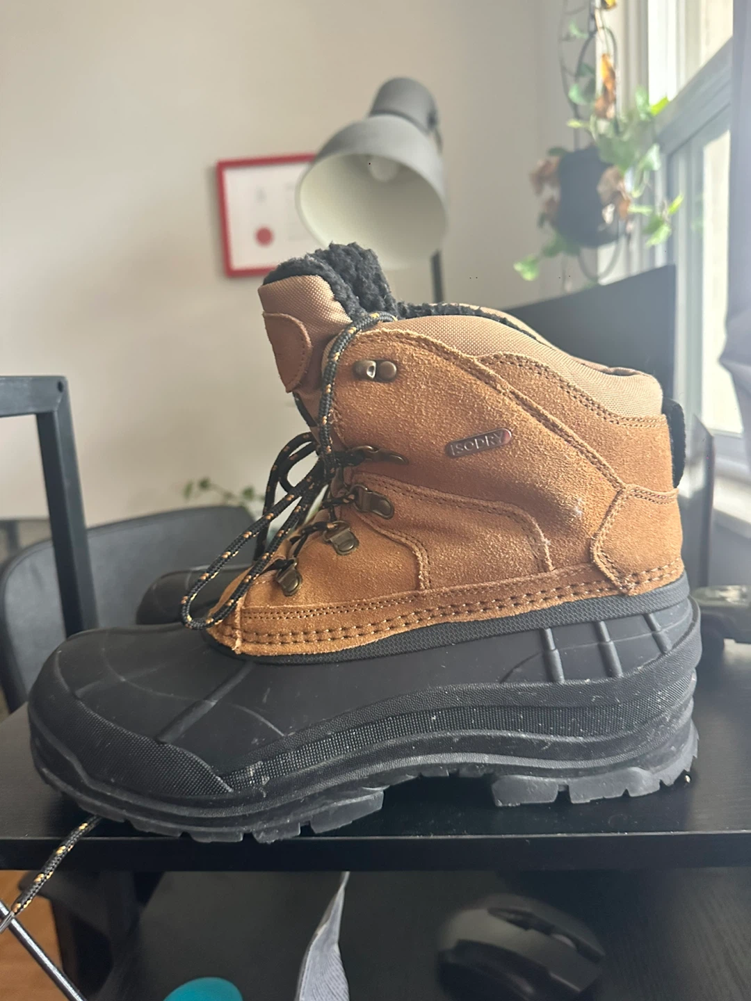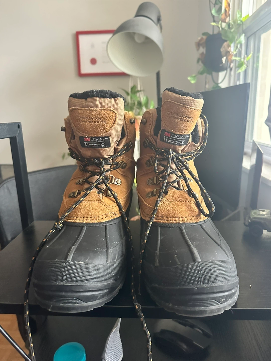 Mountain Warehouse winter boots, perfect for the Canadian winter! These boots feature 3M Thinsulate insulation to keep your feet warm and dry. They are a stylish tan colour with a black rubber bottom for great traction.