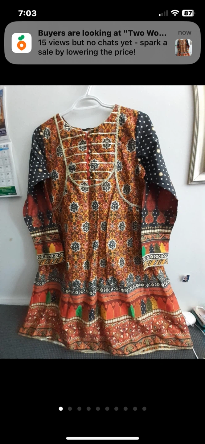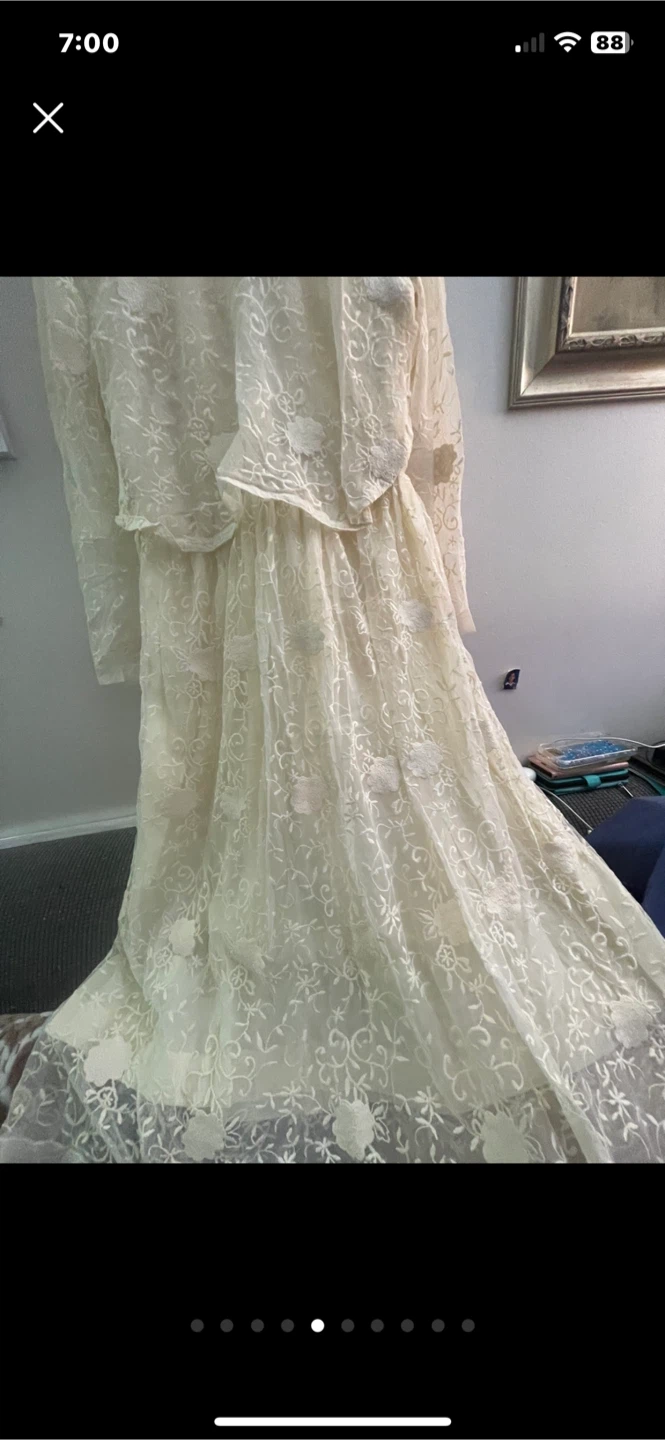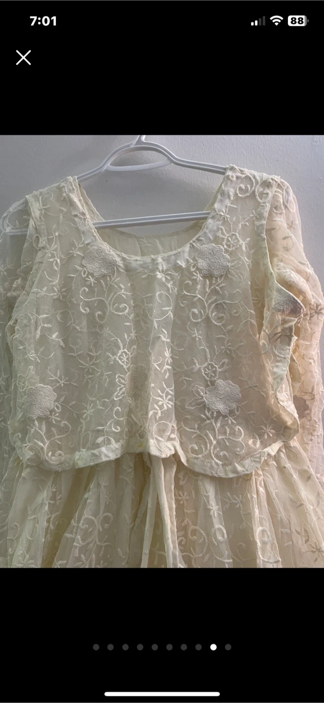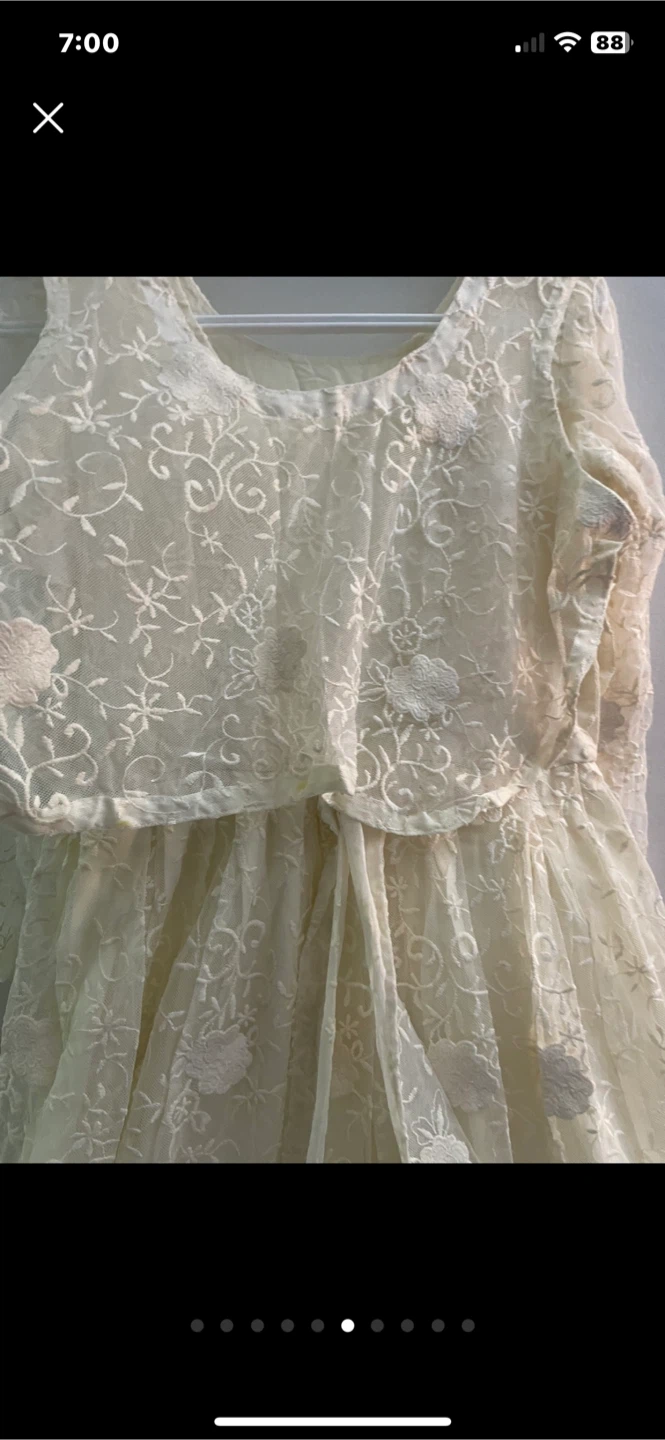 I have a couple of ladies' dresses for sale. One is a beautiful white lace dress, perfect for a special occasion. The other is a colourful floral dress, size 40, great for adding a pop of colour to your wardrobe 12 years print one brand new $30 . Off white one lace fully embroidery works with soft net fabric medium size 14/16 years old $35 pick up at Markham and Lawrence avenue east no drop off check out my other listings please.