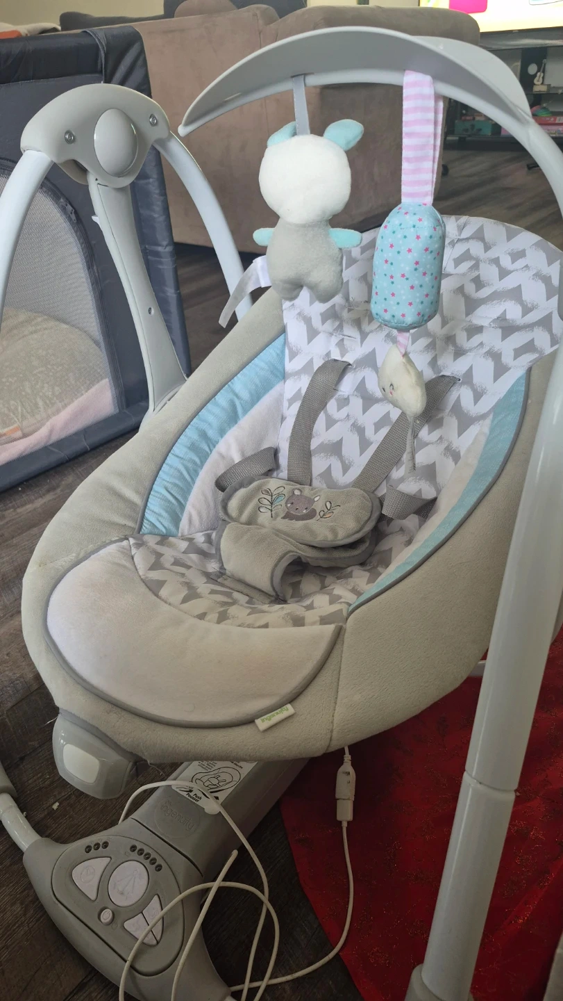 Ingenuity ConvertMe Swing-2-Seat. Can be a swing or seat for 0 to 9 months. Still in good condition. Minor stains but washable.