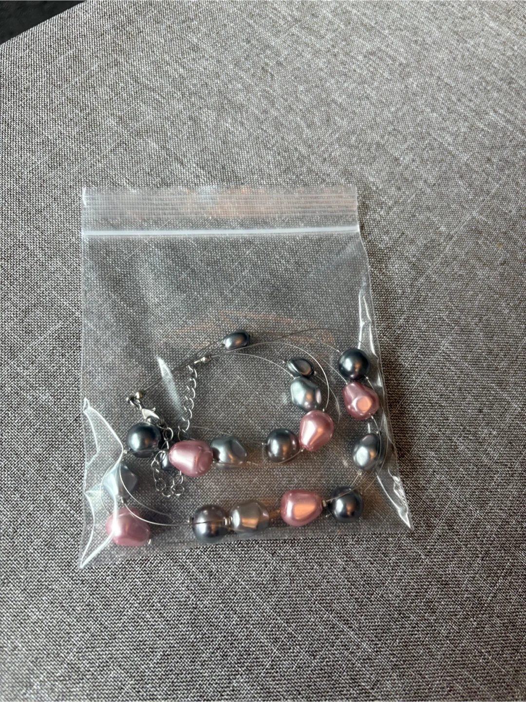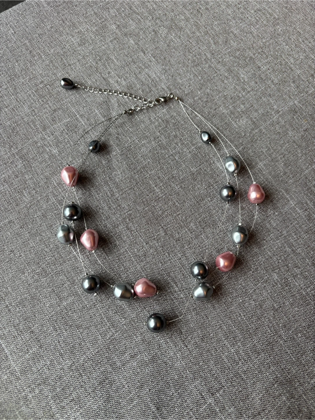 Selling a cute pearl necklace with pink and grey pearls! It's in great condition and would make a lovely addition to any outfit