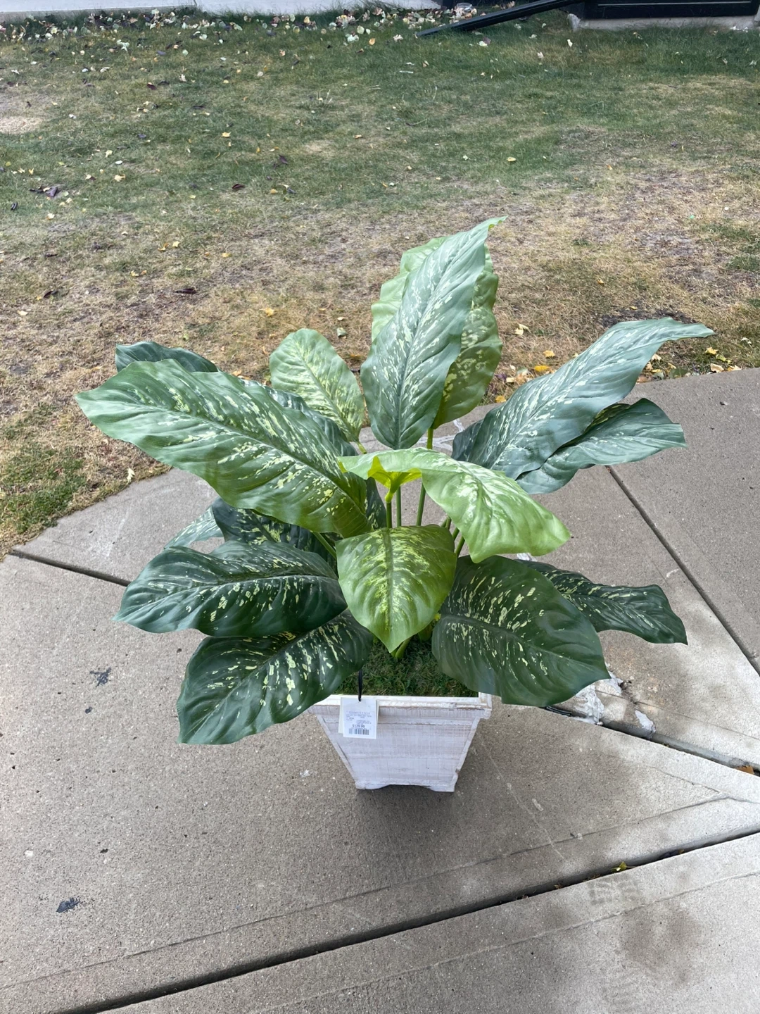 This artificial plant from Homesense comes in a charming white pot! It's perfect for adding a touch of greenery to your space without the upkeep. The original price tag shows it was $129.99