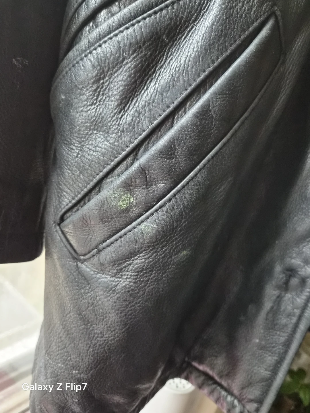 In picture 8 &9 you will see a small spot of green or white paint by the pockets.