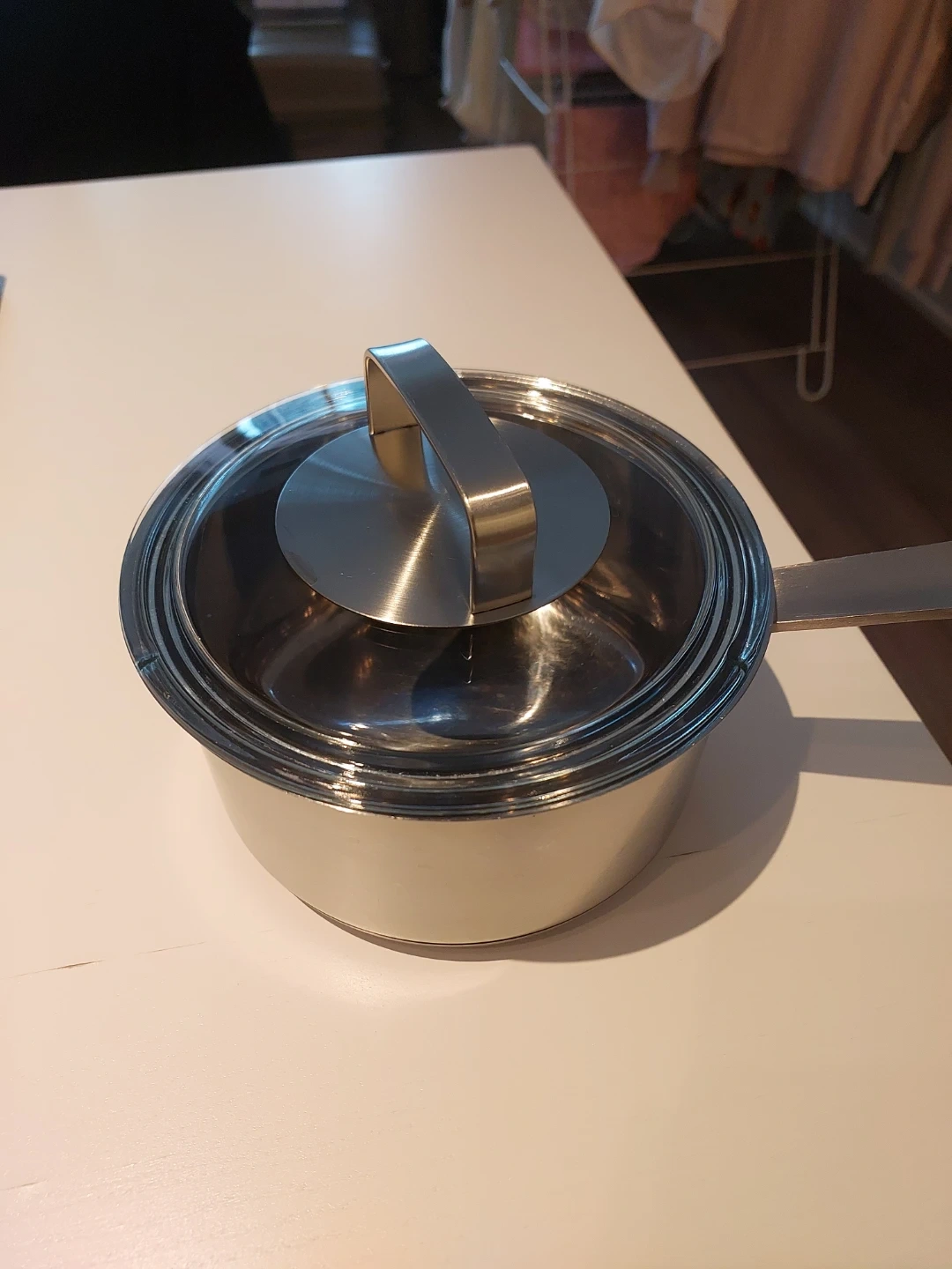 10Selling a used IKEA saucepan made of stainless steel. It comes with a lid as shown in the pictures. Great for cooking up sauces or small meals!