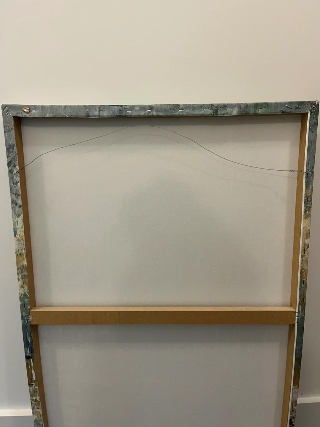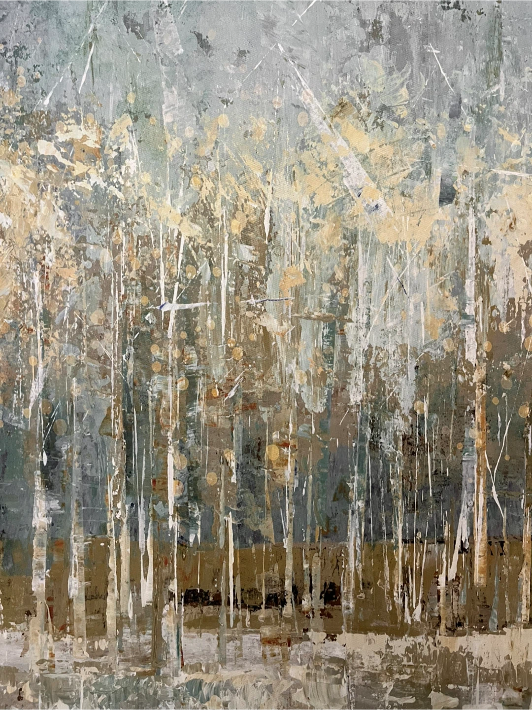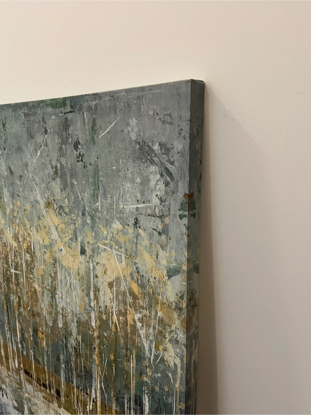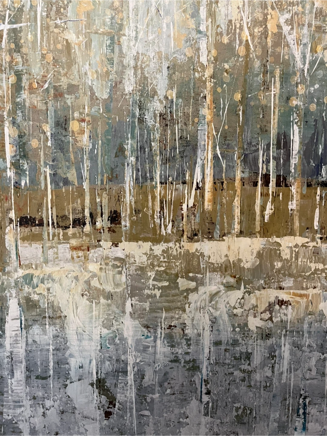 2 ft x 3 ft beautiful abstract print of forest and lake on canvas. In excellent condition. Back is already equipped with wire so you can hang it right away!