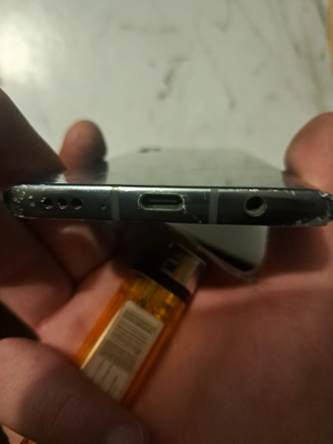Selling an LG phone. Please note it's in used condition with visible wear and tear. There are scratches on the screen and body, and some damage to the edges. See photos for details