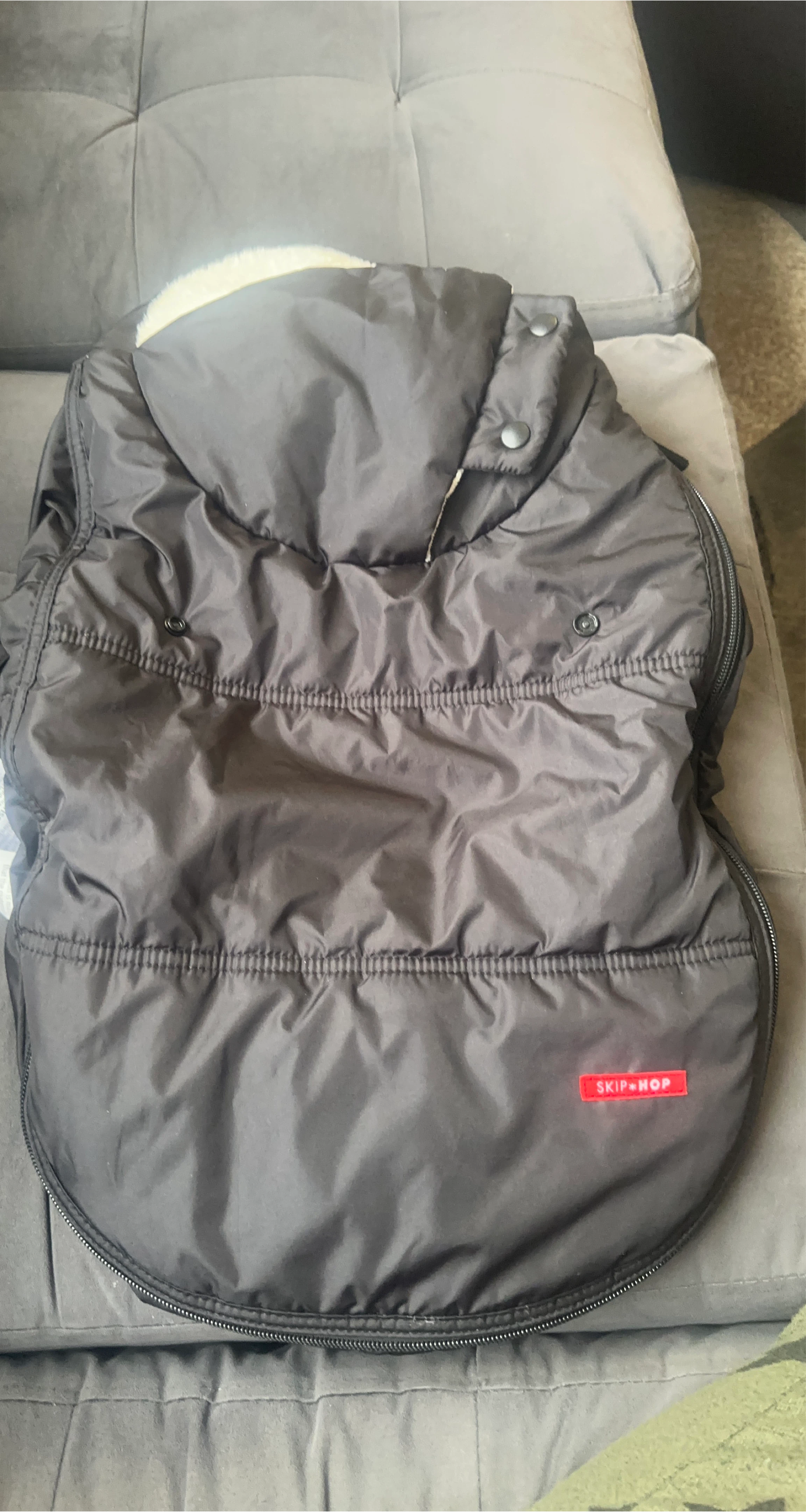 Keep your little one cozy with this Skip Hop Stroll & Go Three-Season Footmuff! It's perfect for keeping your baby warm during stroller rides in any weather. This footmuff is designed to fit most strollers and provides a snug and comfortable environment for your child. Clean and ready to use.