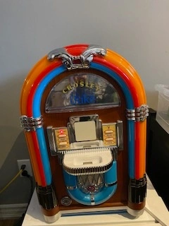 The colourful lights and built-in speaker create an immersive music experience, making it a perfect addition to any home entertainment setup. This original Crosley jukebox is a must-have for collectors and music enthusiasts alike.