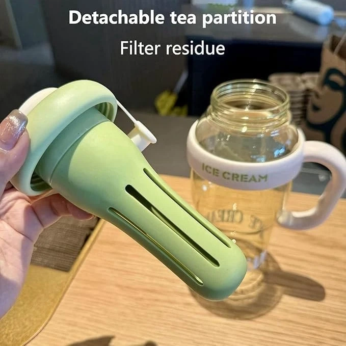 - Color: Creamy mint green lid, handle, and internal cooling element with a clear body