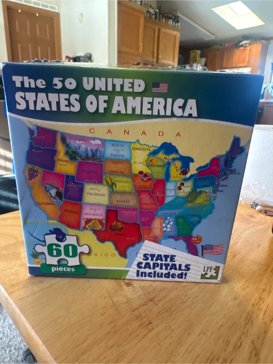 10Selling a puzzle of the 50 United States of America! It comes with 60 pieces and includes state capitals. Perfect for kids. All pieces accounted for. Opened but never put together. Pick up/Meet in Beecher / Crete area