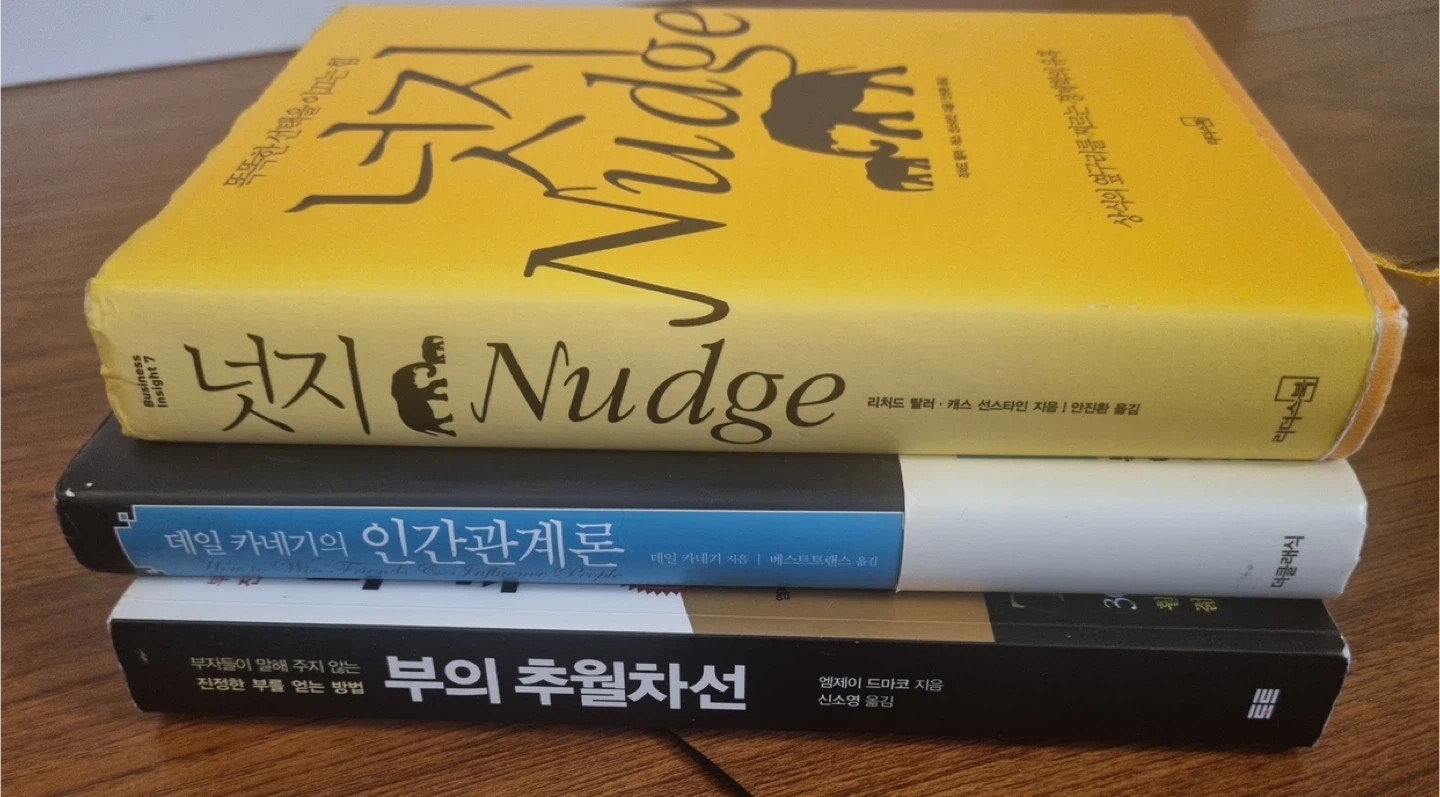 Selling the book 'Nudge' by Richard Thaler and Cass Sunstein. It's in great condition and ready for a new home! Also included in the stack are 'How to Win Friends and Influence People' by Dale Carnegie and 'The Millionaire Fastlane' by MJ DeMarco