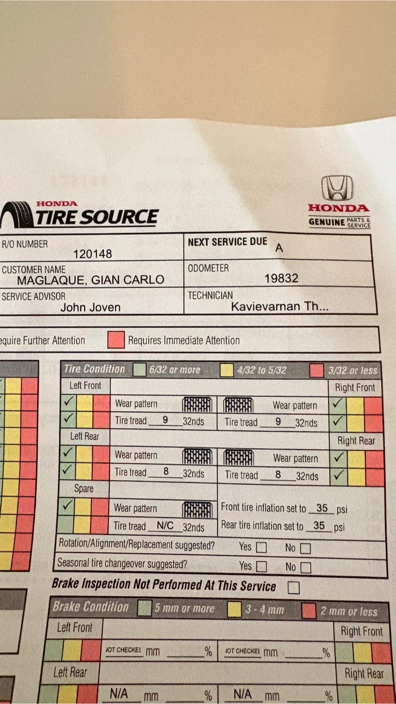 The tire is in very good condition. Used only for 20k km (9 months). Verified with Honda.