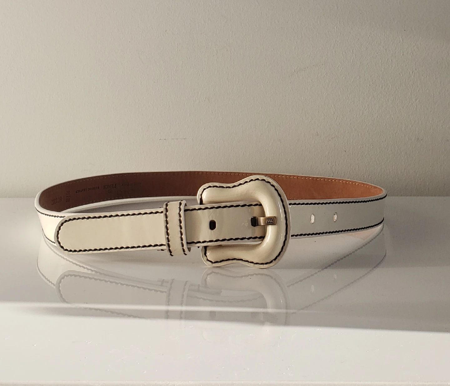 Fendi B Buckle Cream Patent Leather Belt - Vintage y2k