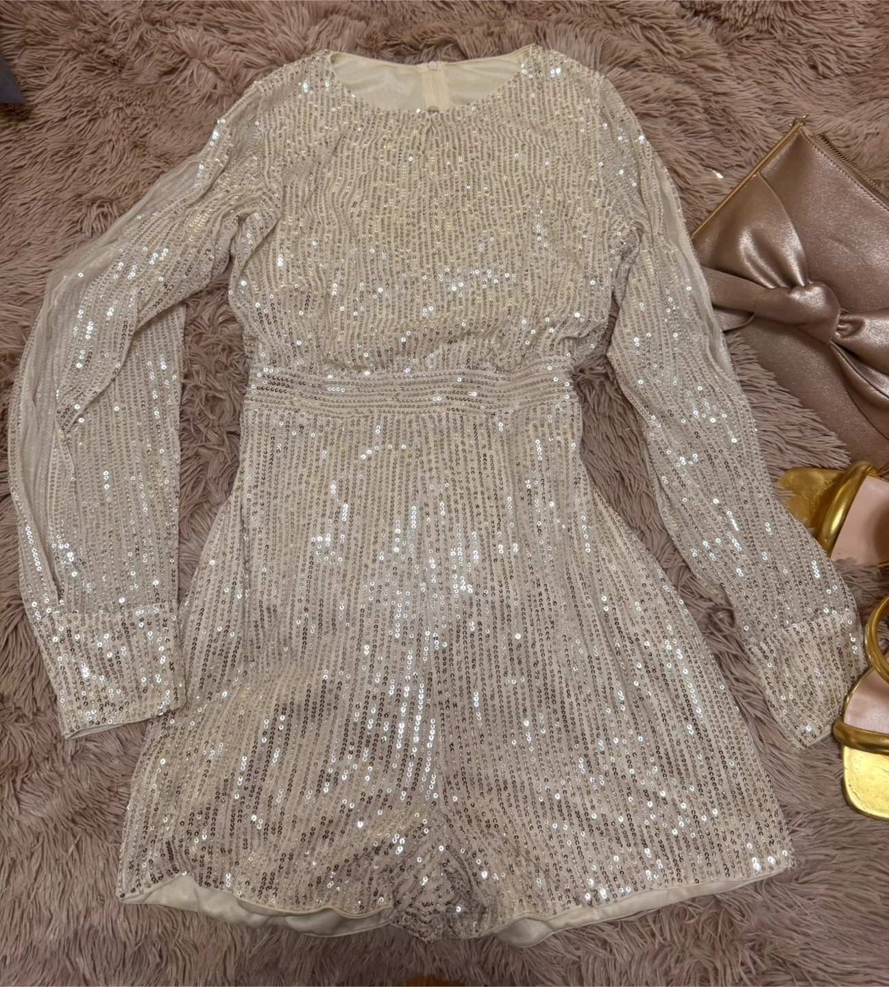 Selling a Belle sequin split sleeve romper! It's a beautiful piece that's sure to make you shine. Worn once.