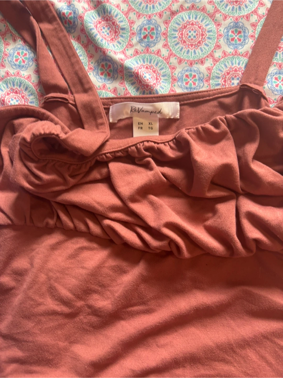 This is a BeVamped tank top in size XL. It's a lovely terracotta colour and would look great for the summer