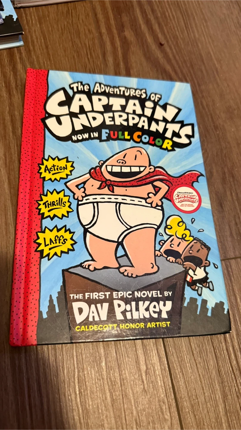 93Selling a copy of 'The Adventures of Captain Underpants' by Dav Pilkey! This is the first epic novel in the series and it's now in full colour. Get ready for action, thrills, and laffs!