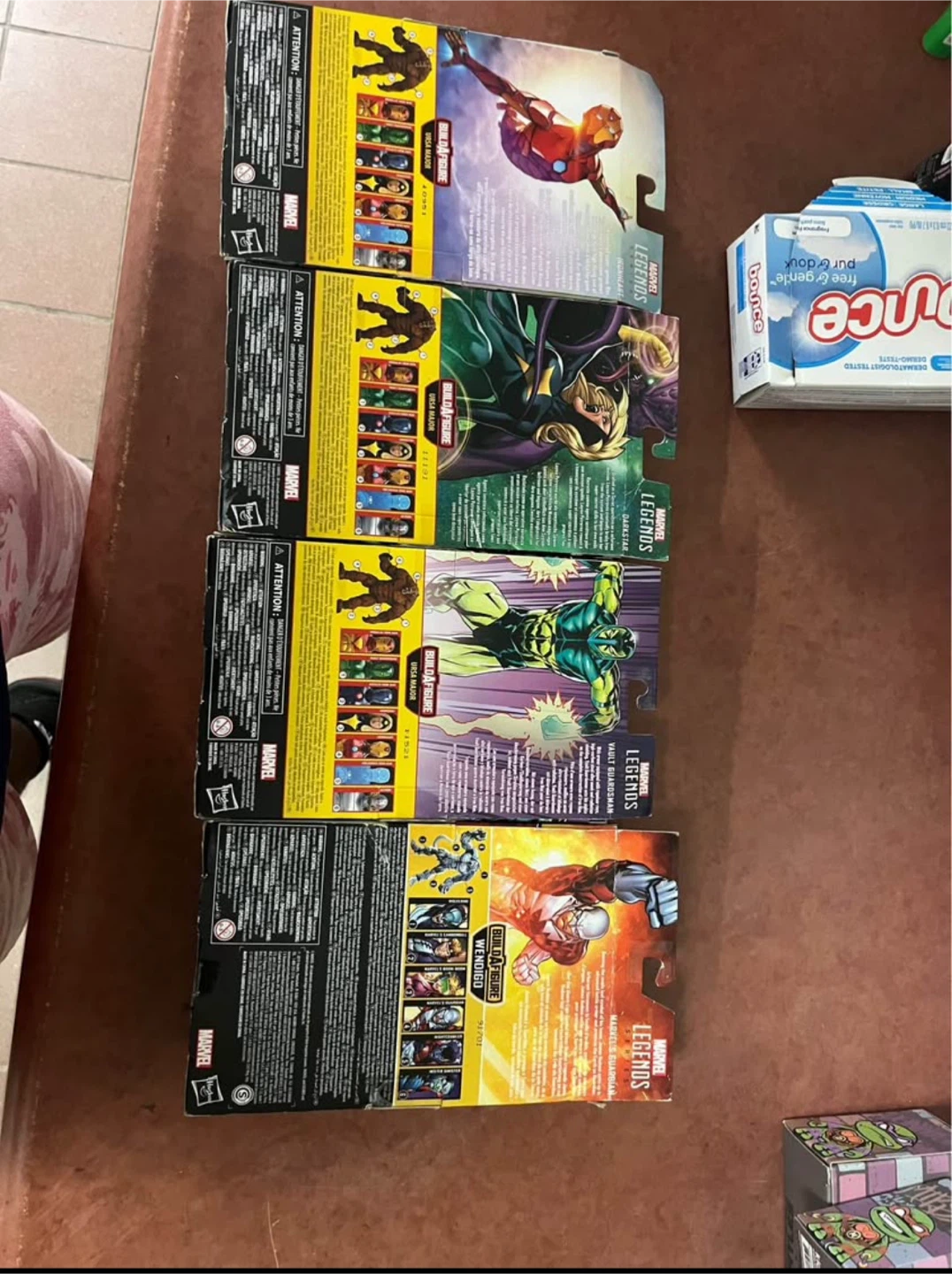 Selling a set of Marvel Legends action figures. Includes Alpha Flight Marvel's Guardian, Ironheart Riri Williams, Darkstar, and Iron Man Vault Guardians. Great for collectors!