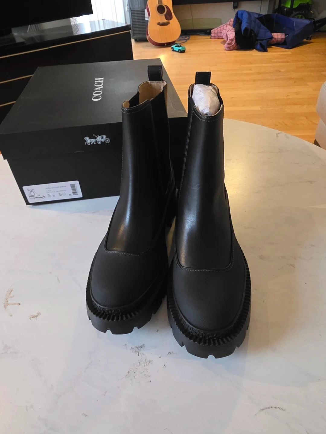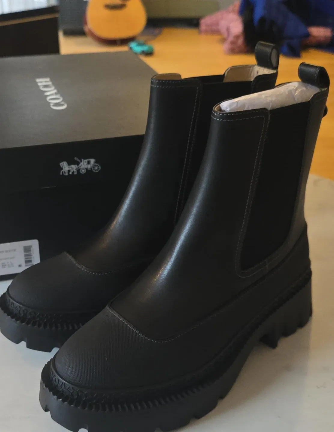 Selling a pair of brand new Coach Chelsea boots! These are a stylish and comfortable addition to any wardrobe. They come with the original box.