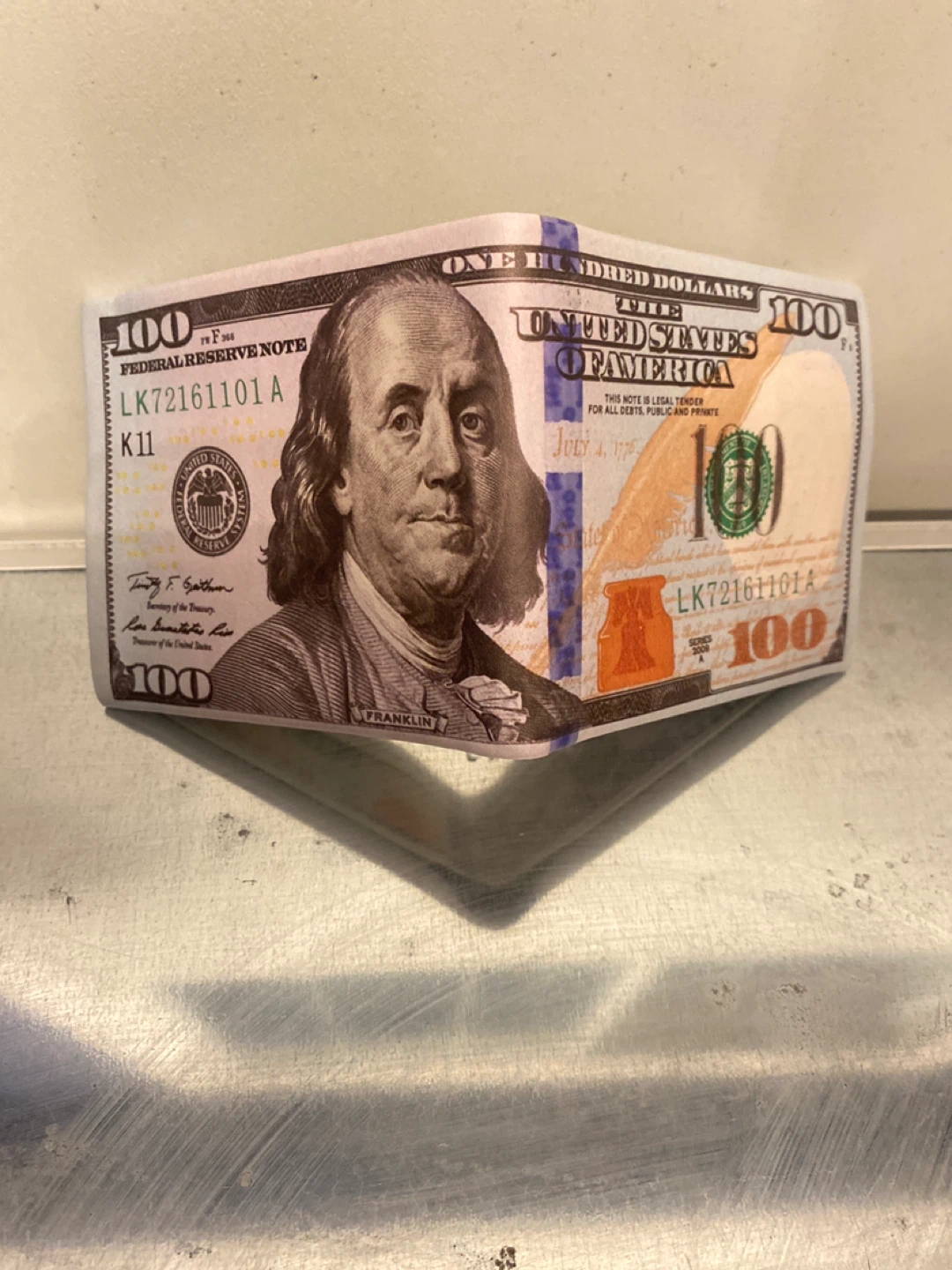 1 / 31 / 3Buy & Sell100 Dollar Bill Wallet100 Dollar Bill Wallet$5Unique wallet designed to look like a hundred-dollar American bill feature Benjamin Franklin! Great for adding a bit of fun to your everyday carryConditionNewWHERE TO MEETGeorge Peck Public SchoolView MapSELLERverifiedJoeyWexford1000+312 reviews3 chats·8 favorites·215 viewsSEND CHAT TO SELLERHi Joey! I’m interested in your listing.Hi Joey! I’m interested in your listing.Get the Karrot app to chatSign In to chat