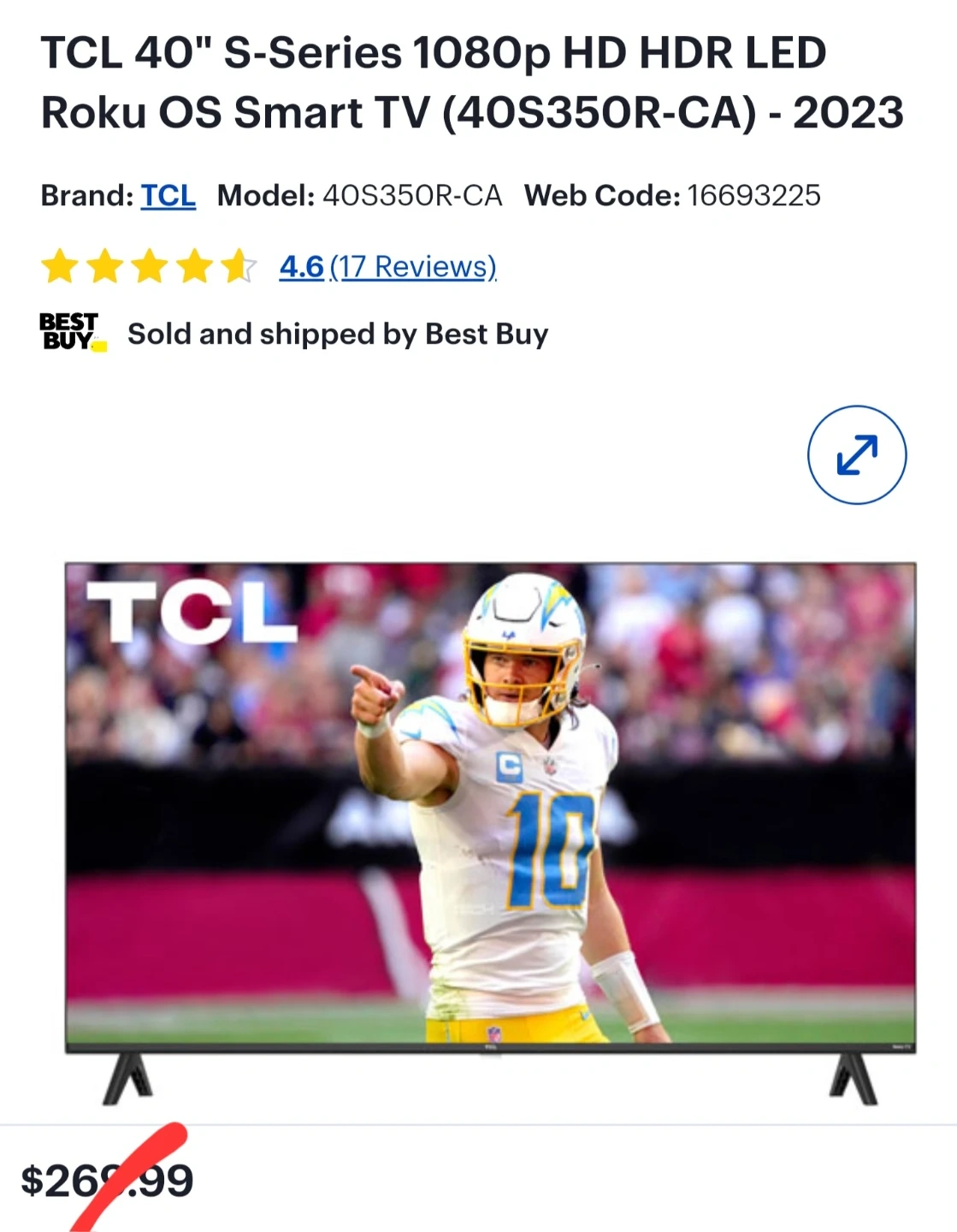 This is a new open box TCL 43'' 1080p Roku Smart TV