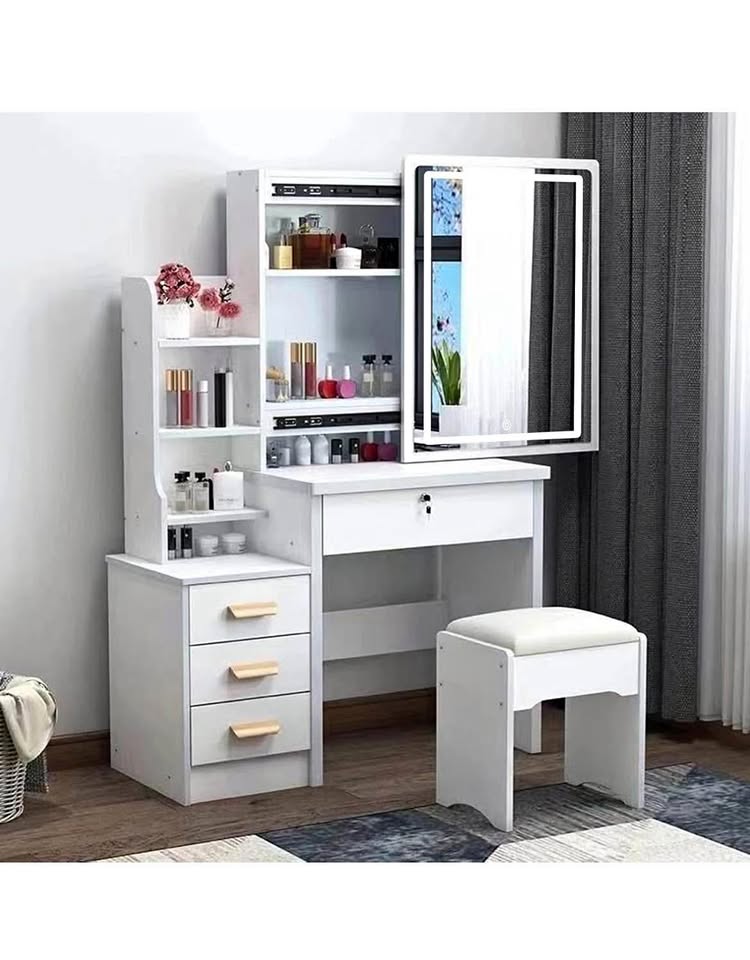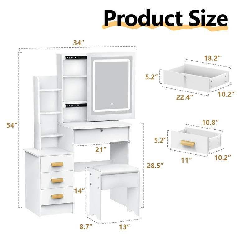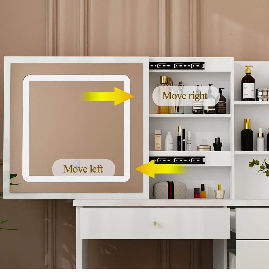 ✨ Makeup Vanity Desk with LED Light Mirror & Drawers – White-Qua