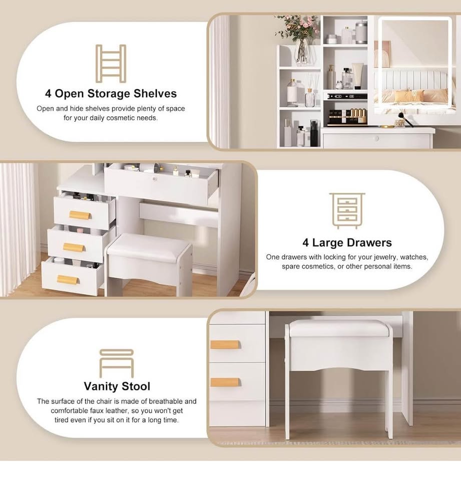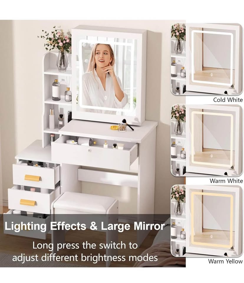 ✨ Makeup Vanity Desk with LED Light Mirror & Drawers – White 🆕 Brand New | Beautiful modern design ⚡ Limited units 💄 Highlights: • Sliding LED mirror with touch control • Hidden shelves & lockable drawers • Solid structure – easy assembly • Perfect for organizing makeup, jewelry & skincare • Great gift for her – birthdays or holidays 💝 📍 Pickup: Scarborough ✔️ Check before purchase for your satisfaction!