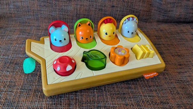 Fisher-Price Pop-Up toy with adorable animal characters that pop up when you press the corresponding shape.