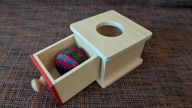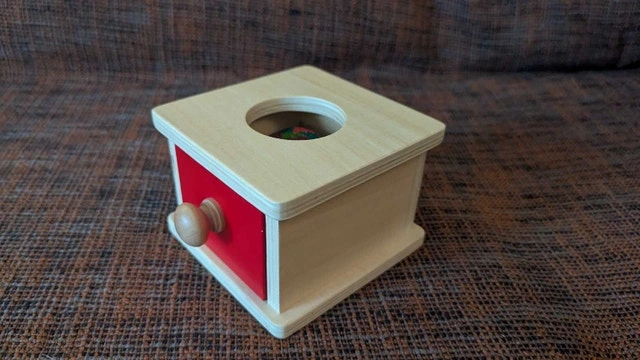 This Montessori object permanence box is designed to help young children develop their understanding of object permanence.