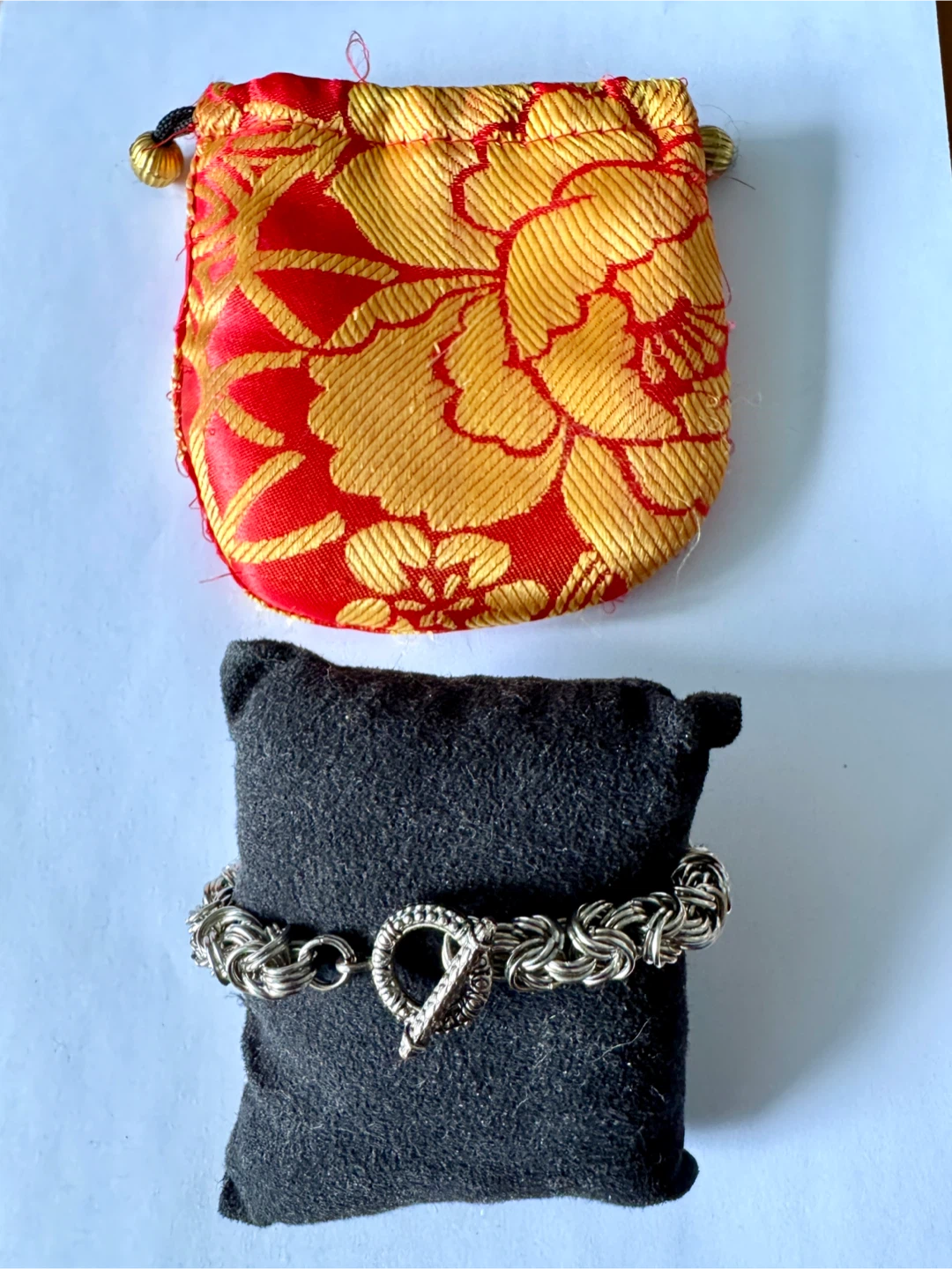 Brand new, never worn sterling silver Celtic style chain bracelet. comes with a decorative pouch for storage. The bracelet measures approximately 8.5 inches in length.