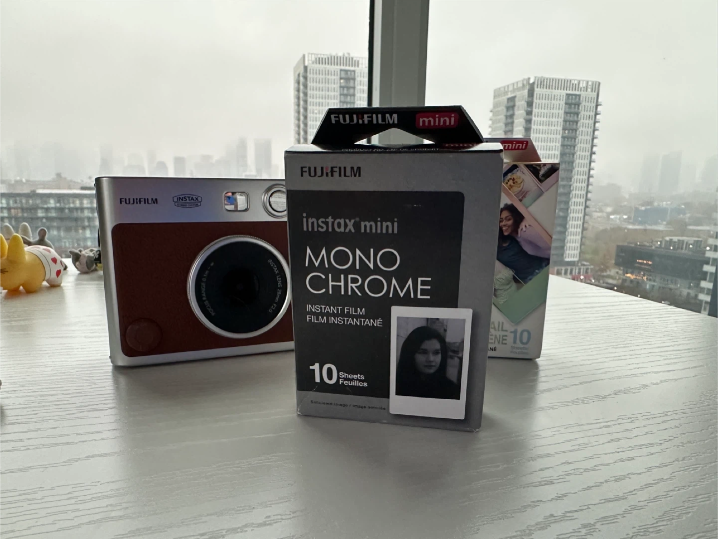 Selling a Fujifilm Instax Mini Evo camera along with some film! It's in great condition and ready for a new home. Perfect for capturing memories instantly. Includes a pack of Instax Mini Monochrome film and a pack of regular Instax Mini film, so you can start snapping photos right away