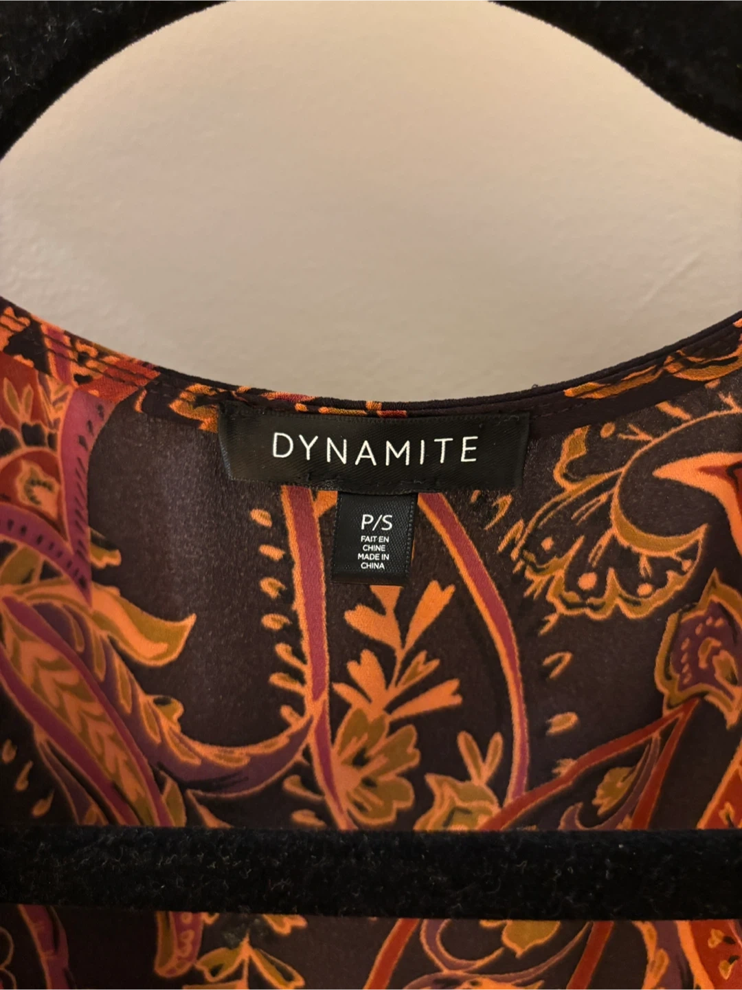 Dynamite blouse in size P/S. The blouse has a beautiful paisley pattern and is made of 100% polyester