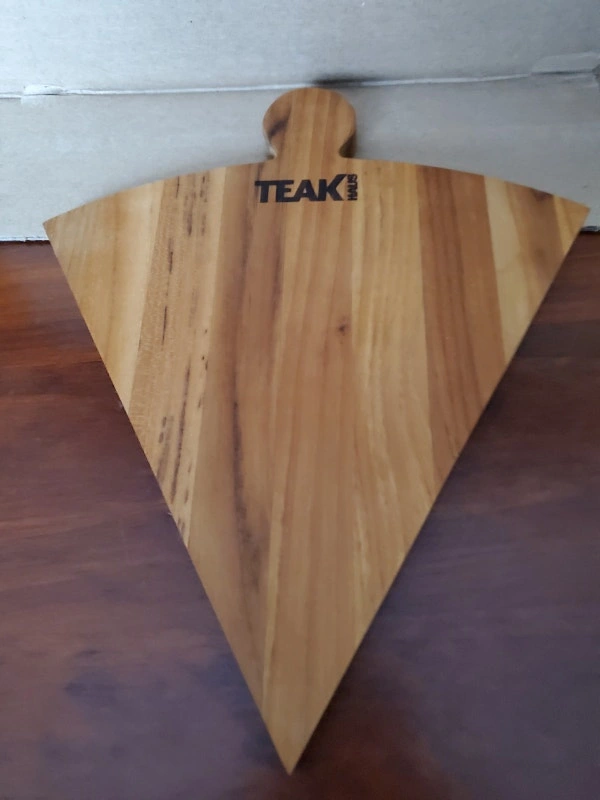 - Small Teak cutting board/cheese board - 8.5" (at widest) x 10" (tip to handle) - TEAK HAUS $3.00
