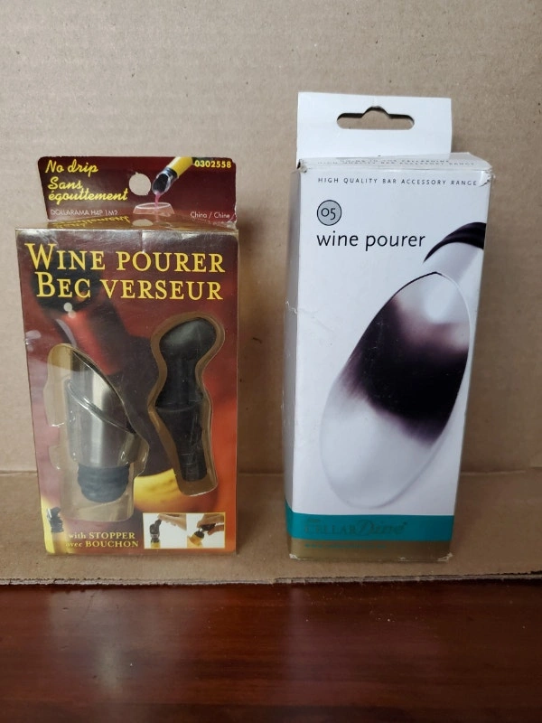 - Pair of wine pourers/bottle stoppers (both new in boxes) $3.00