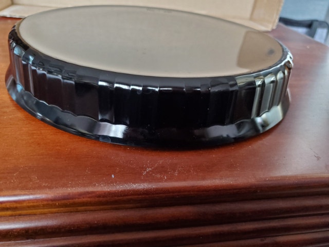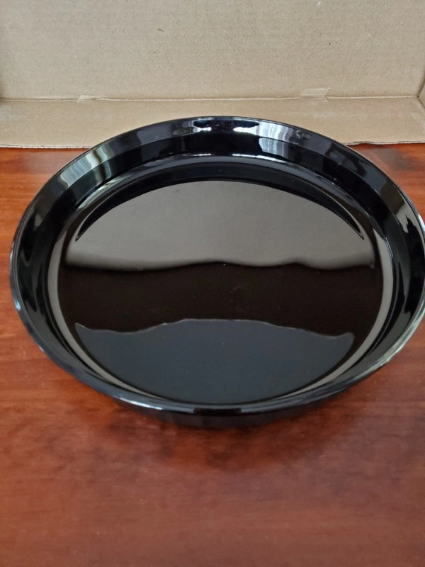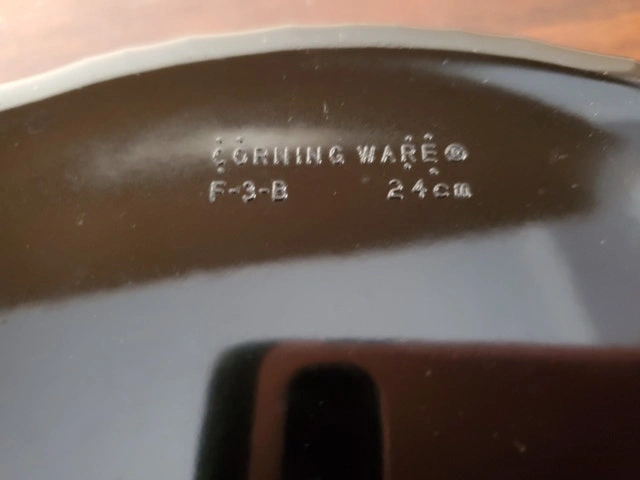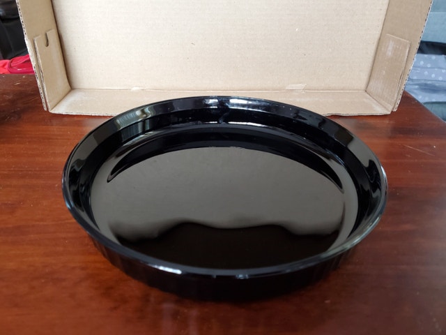 A vintage Corning Ware quiche dish in the French Black pattern. It's model F-3-B, and it's the 24cm size. $15.00, pick up only.