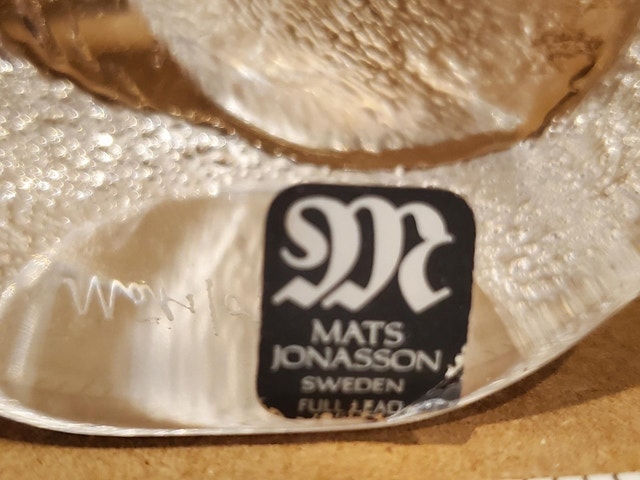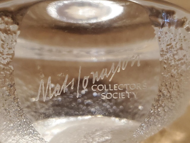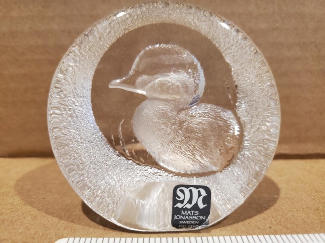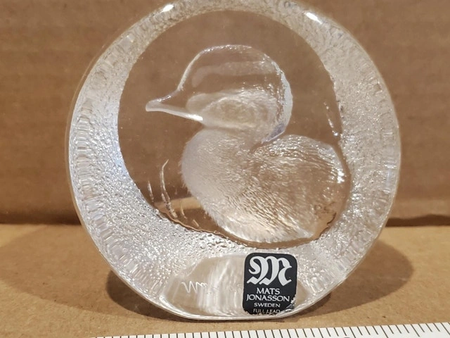 MATS JONASSON Crystal Duckling - Collector Society Paperweight. It’s small – about 2” wide, and 2.75” tall. Full lead crystal. Signed on the bottom, and marked “Collector Society”. Asking $15.00, pick up only.