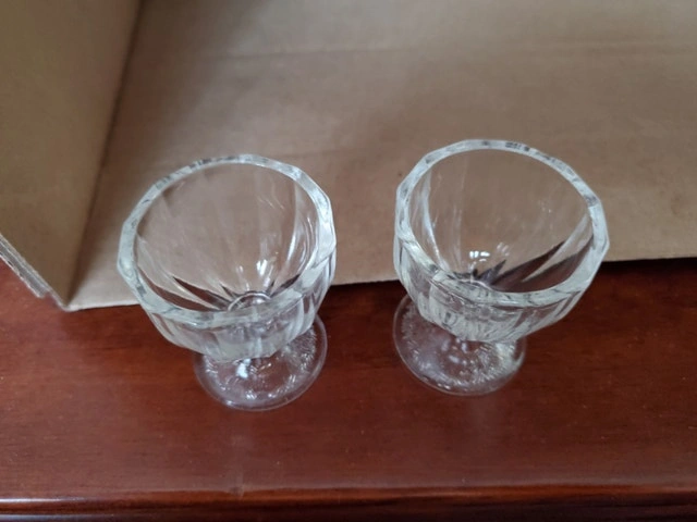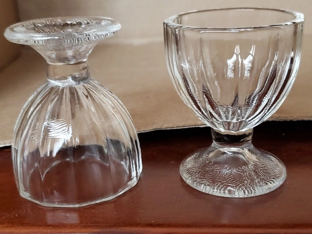 10A pair of vintage Dominion Glass Egg Cups. They stand about 2.5" tall, and the diameter is 2". $5.00 for the pair, pick up only