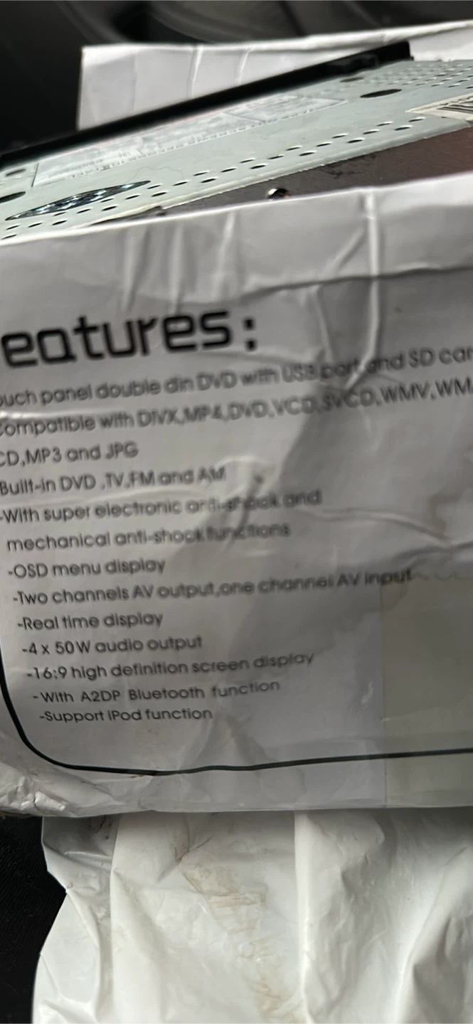 Selling a YHT double din 6.2 inch car entertainment system. It has a touch panel, USB port, and SD card compatibility. It also supports DIVX, MP4, DVD, VCD, SVCD, WMV, WMA, CD, MP3, and JPG formats.