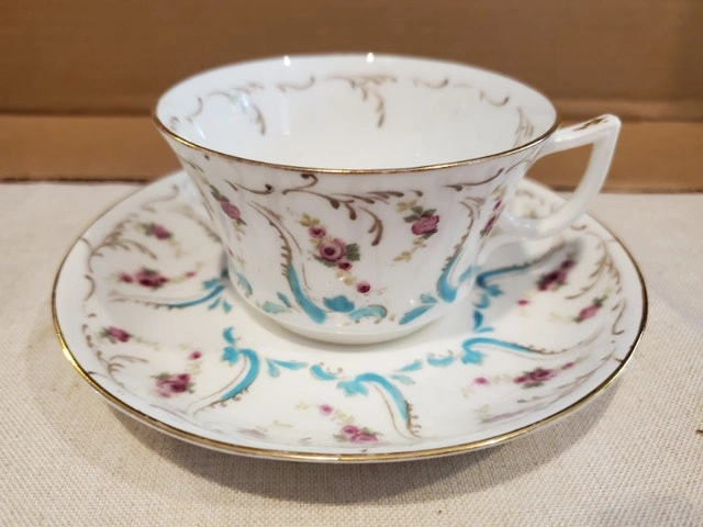 Nice small vintage teacup and saucer, it's made in England and stamped "Constance" on the back of the saucer. $5.00, pick up only.