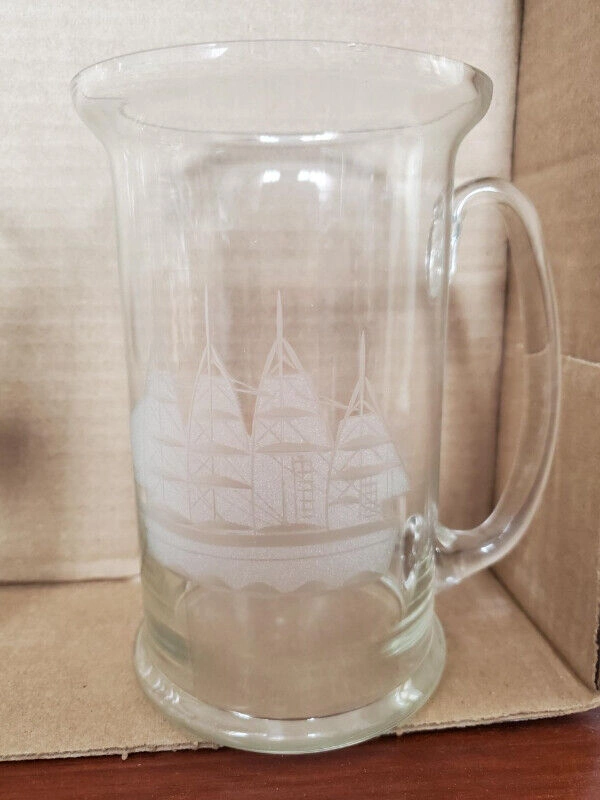 Canadians Pint Glass Very light glass mug, with etched sailboat.