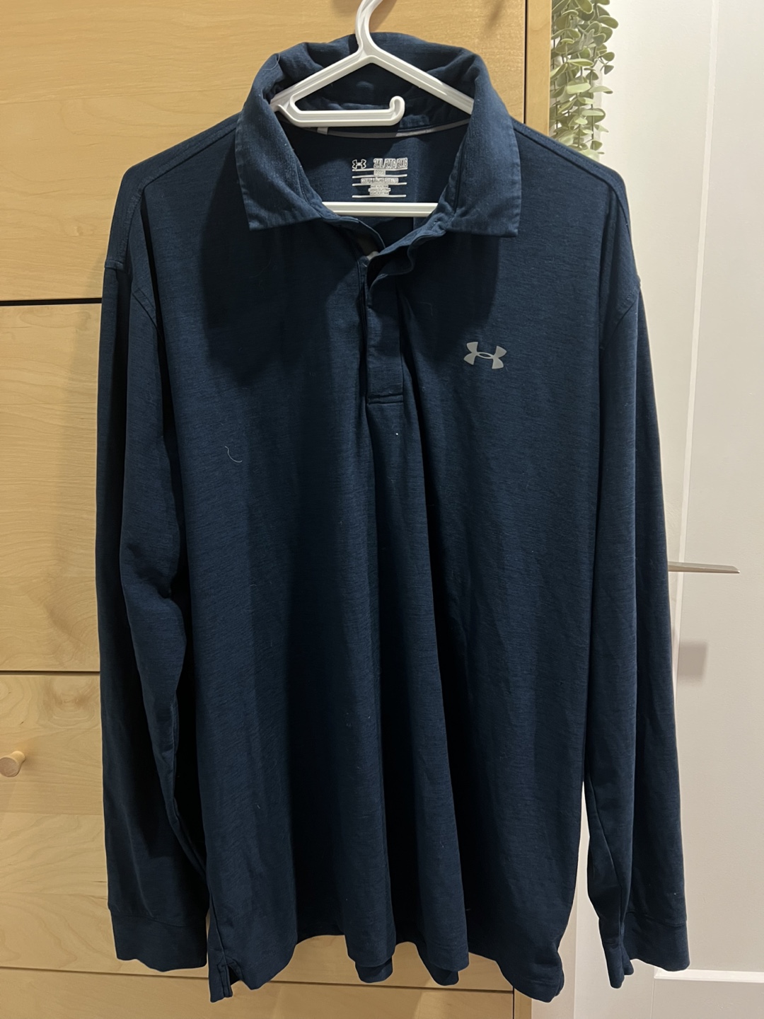 Selling a Under Armour long sleeve polo shirt in size 2XL. It's a stylish and comfortable shirt perfect for casual wear or a round of golf. The shirt is in great condition and has a loose fit for added comfort