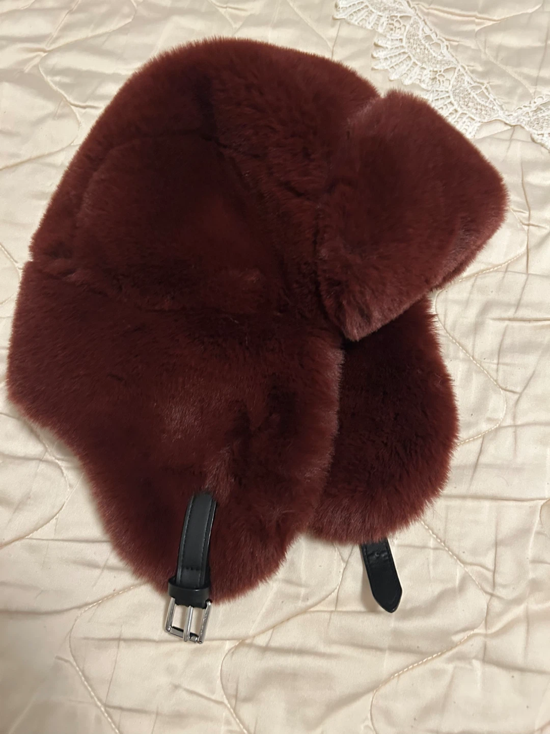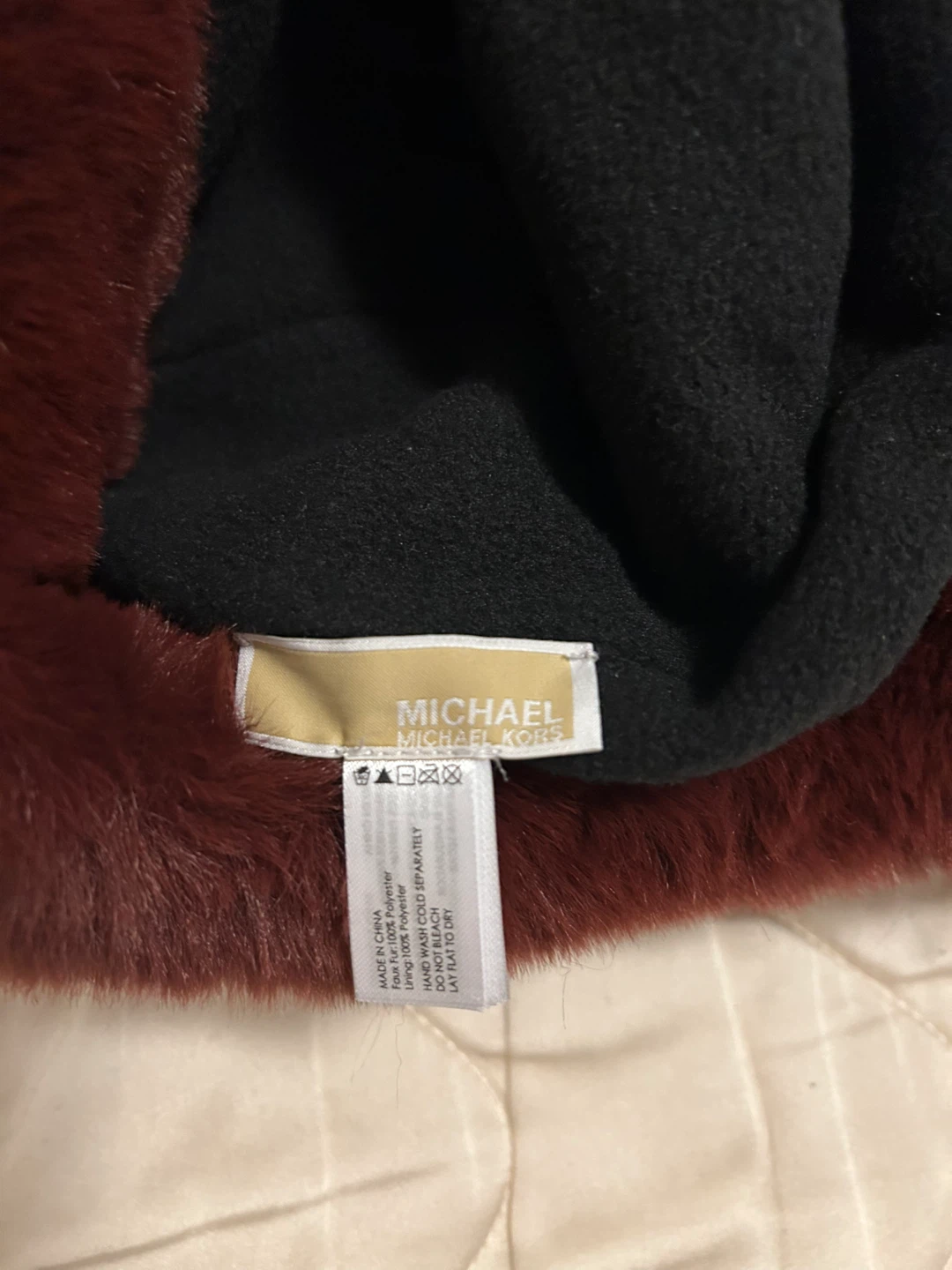 Cozy up with this stylish Michael Kors faux fur trapper hat! It's a beautiful burgundy colour. This hat is sure to keep you warm and fashionable during the colder months. Worn 2 times