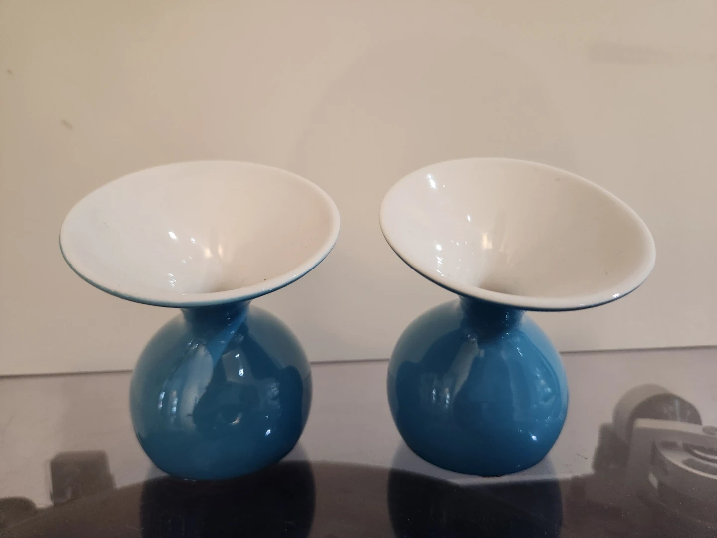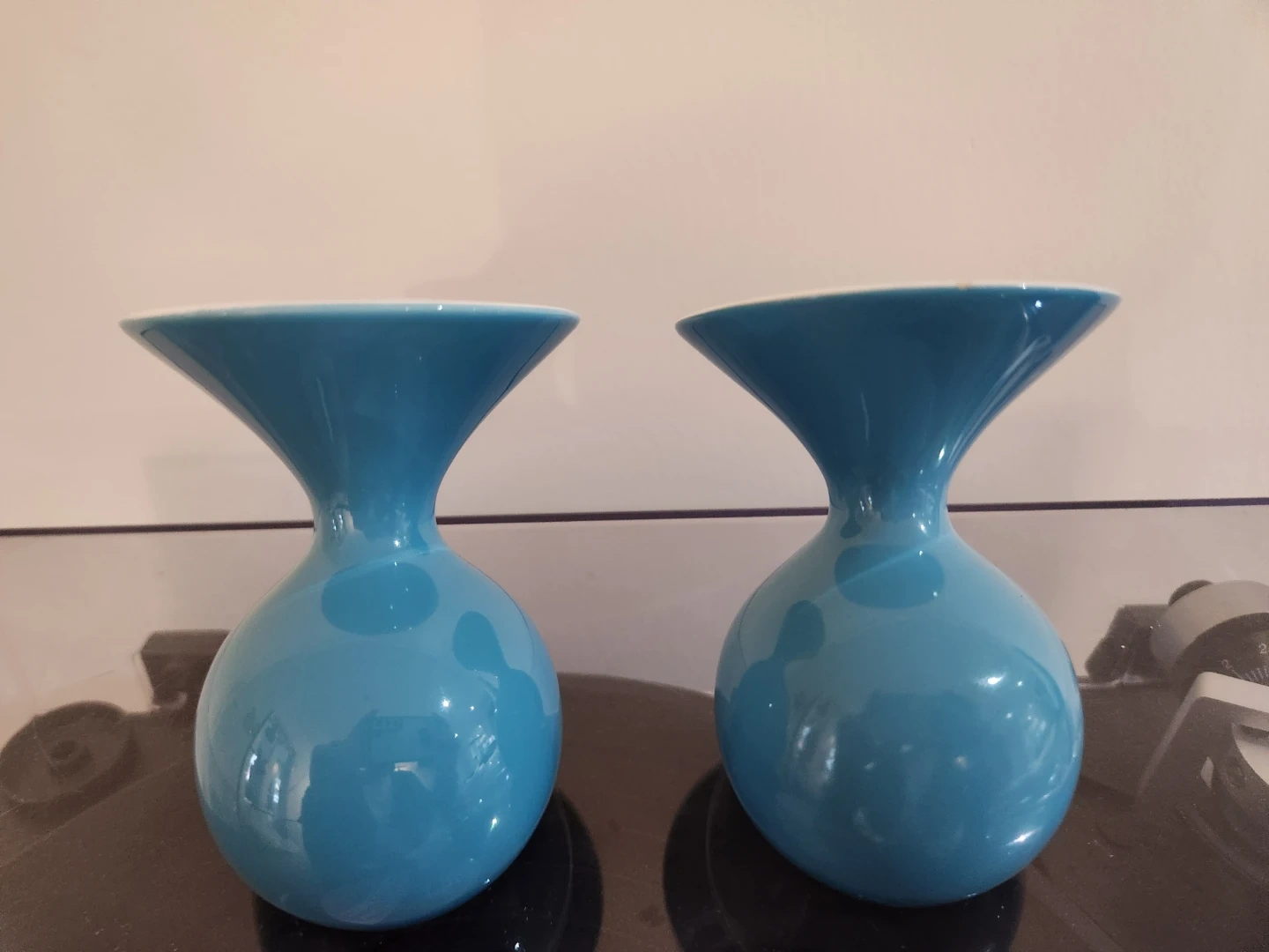 Selling a pair of lovely single flower blue vases. They would look great with any decor and need a new home!