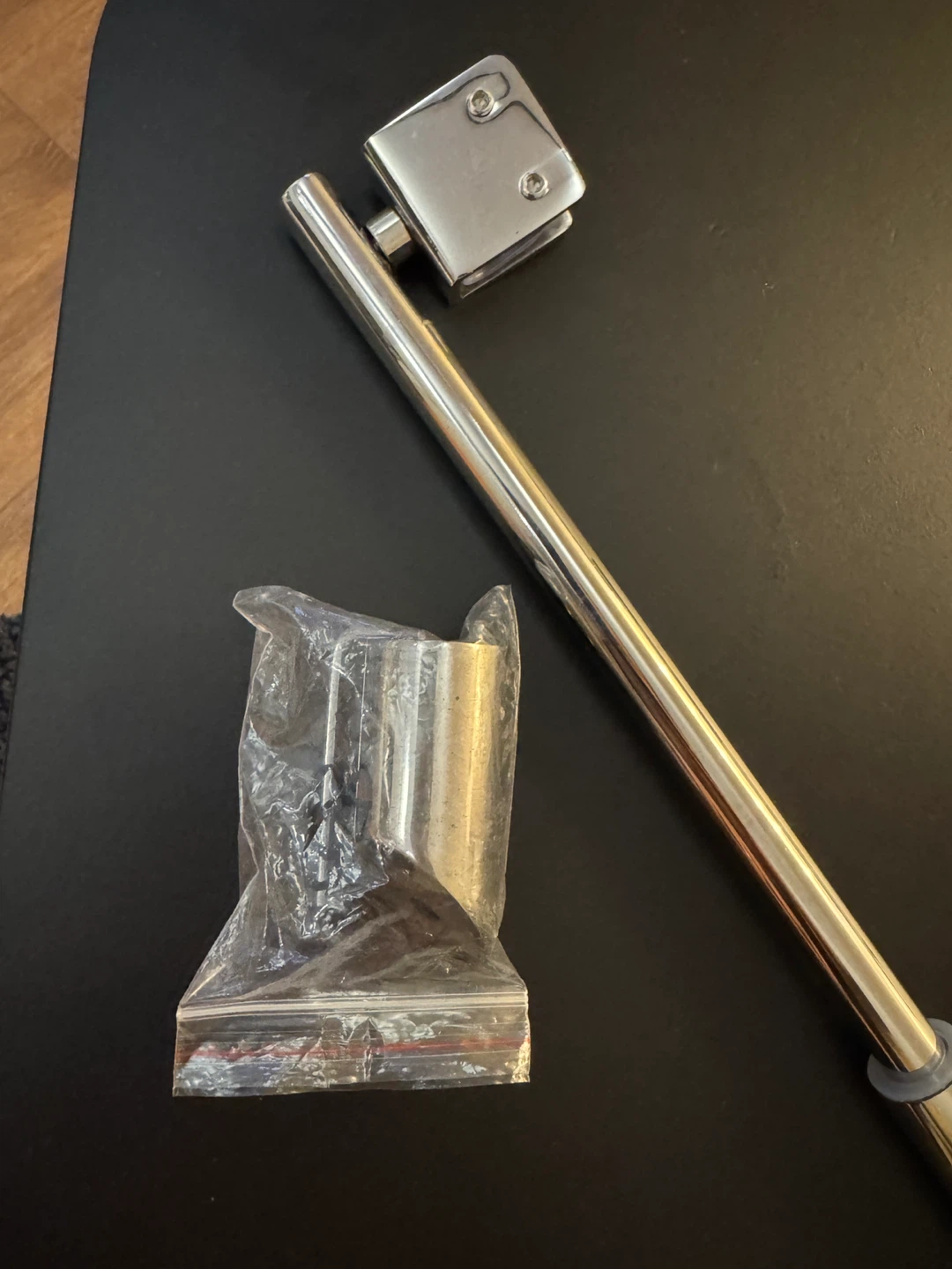 Selling a shower door support bar in a chrome finish. It appears to be in new condition and includes all the necessary hardware for installation. Perfect for adding extra stability to your shower door!