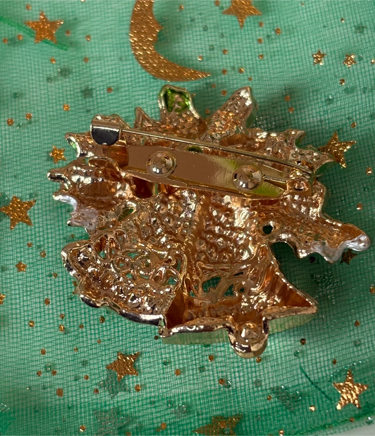 Beautiful Christmas bell brooch with rhinestones and festive details! It's in great condition and would be a lovely addition to your holiday attire or a thoughtful gift for someone special.