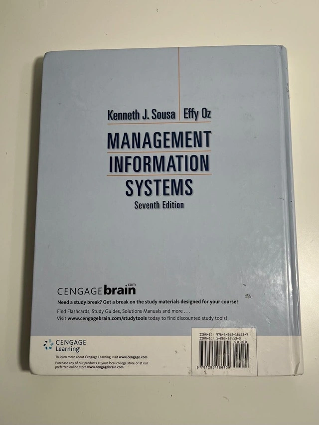 Used Like New "Management Information Systems, Seventh Edition" by Kenneth J. Sousa and Effy Oz, perfect for students or professionals looking to expand their knowledge in the field. The book is in EXCELLENT condition!