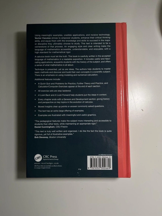 Used Like New "Vector Calculus" by Steven G. Krantz and Harold Parks, a textbook tailored for mathematics. This book provides comprehensive coverage on vector calculus, making it an essential resource for students and professionals in the field. Authors: Steven G. Krantz and Harold Parks. Subject: Vector Calculus. Type: Textbook. Condition: Used Like New. I'm asking $20 CAD which reflects its value as a learning resource and its current condition, a reasonable price based on similar listings on Kijiji. If the ad is up, then yes, it is still available!