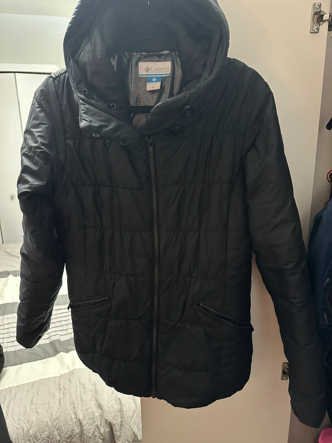 Selling a gently used Columbia black puffer jacket in size medium. It's in great condition and perfect for the cooler weather.