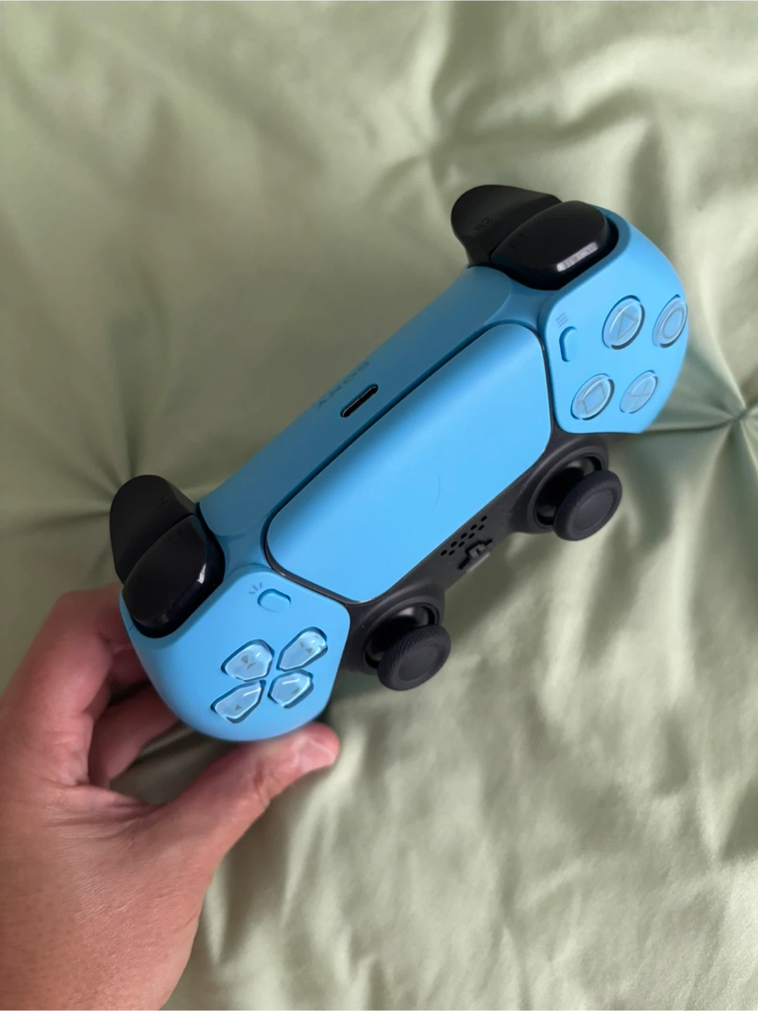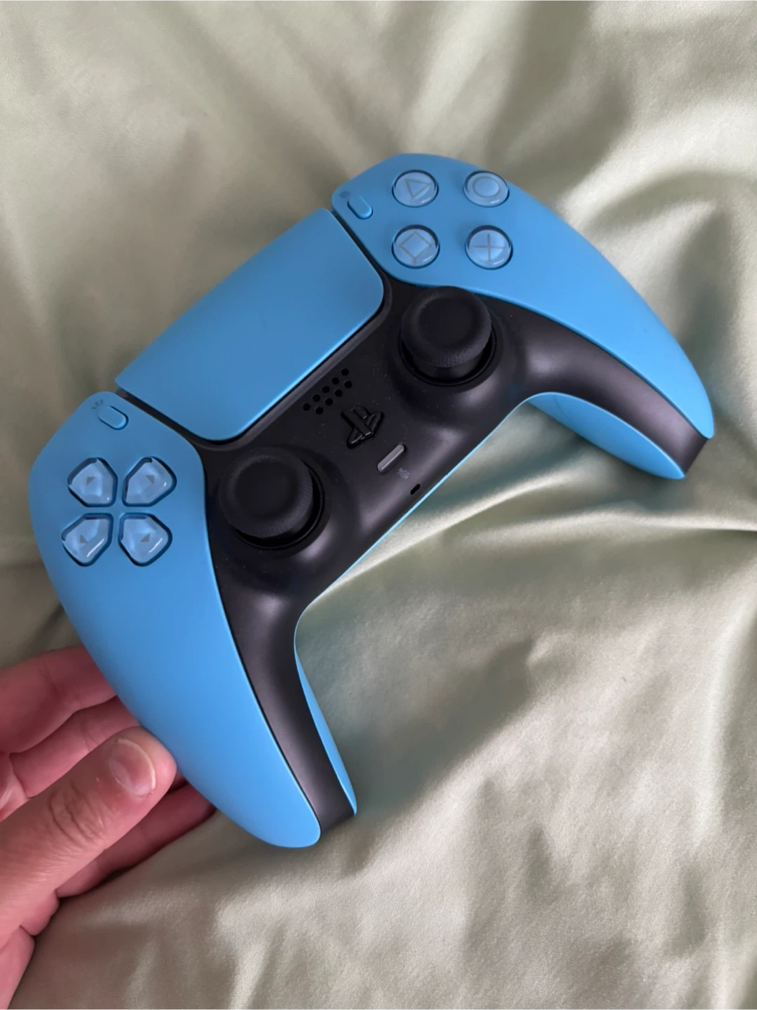 Selling a blue PlayStation 5 DualSense controller! It's in great condition and ready for a new home. Perfect for gaming on your PS5!