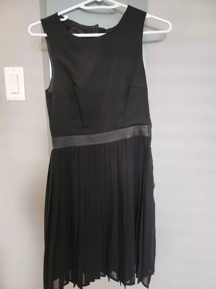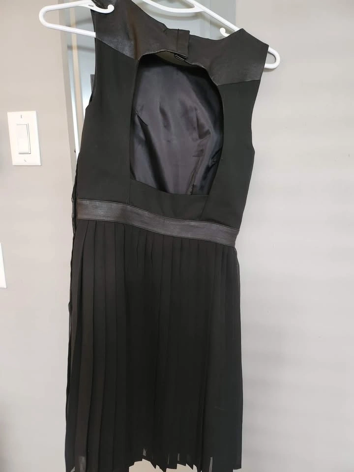 Black dress with faux leather trim