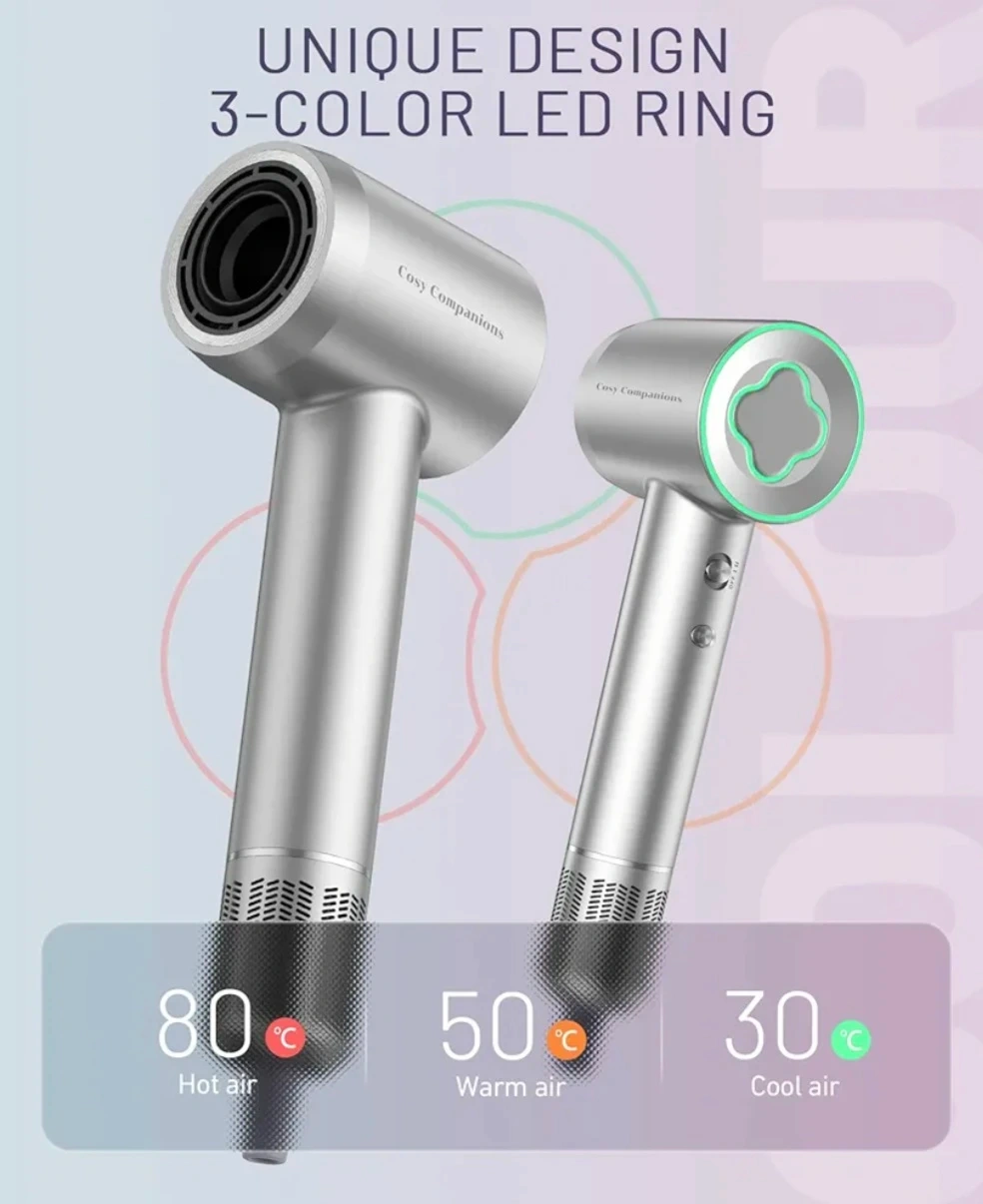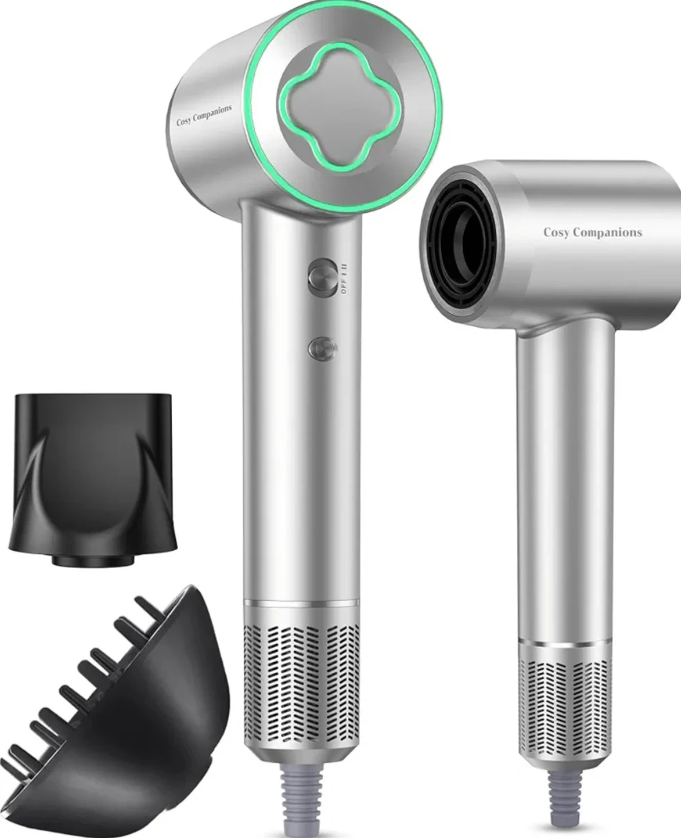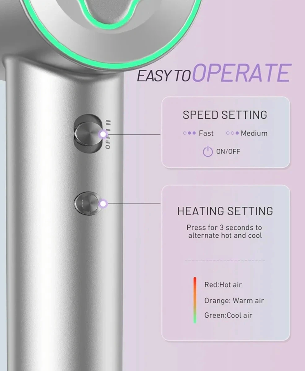 Hair Dryer - 150000 RPM High-Speed Brushless Motor Negative Ionic Blow Dryer for Fast Drying, Low Noise Thermo-Control Hair Dryer with Diffuser and Nozzle, Silvery. Fast Drying, Negative Ionic Technology, Low Noise & Safe, Light and Portable!
